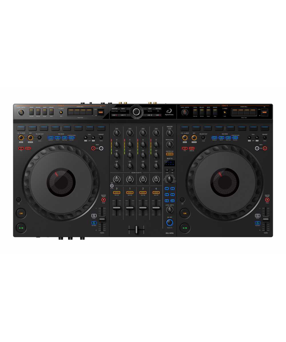 The DDJ-GRV6 is compatible with Serato DJ Pro, which includes a Stems FX feature. Express yourself musically by applying effects such as Roll, Trans, Echo Out, and Delay to the separate Stems of a track – drums, bass, vocal, or melody. Apply the overlay sheet included with the DDJ-GRV6 to change the button labels to Stems FX for ease of use.