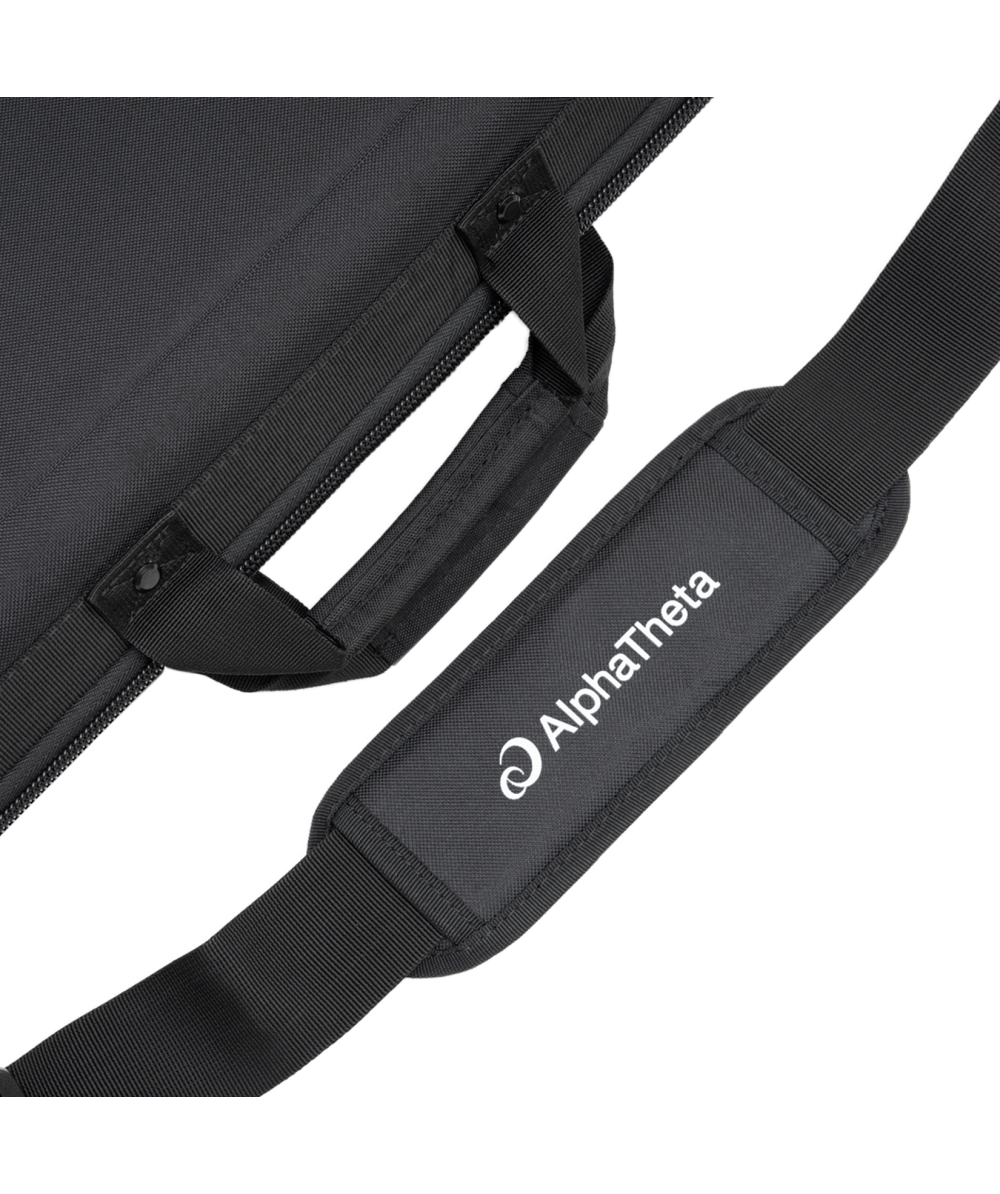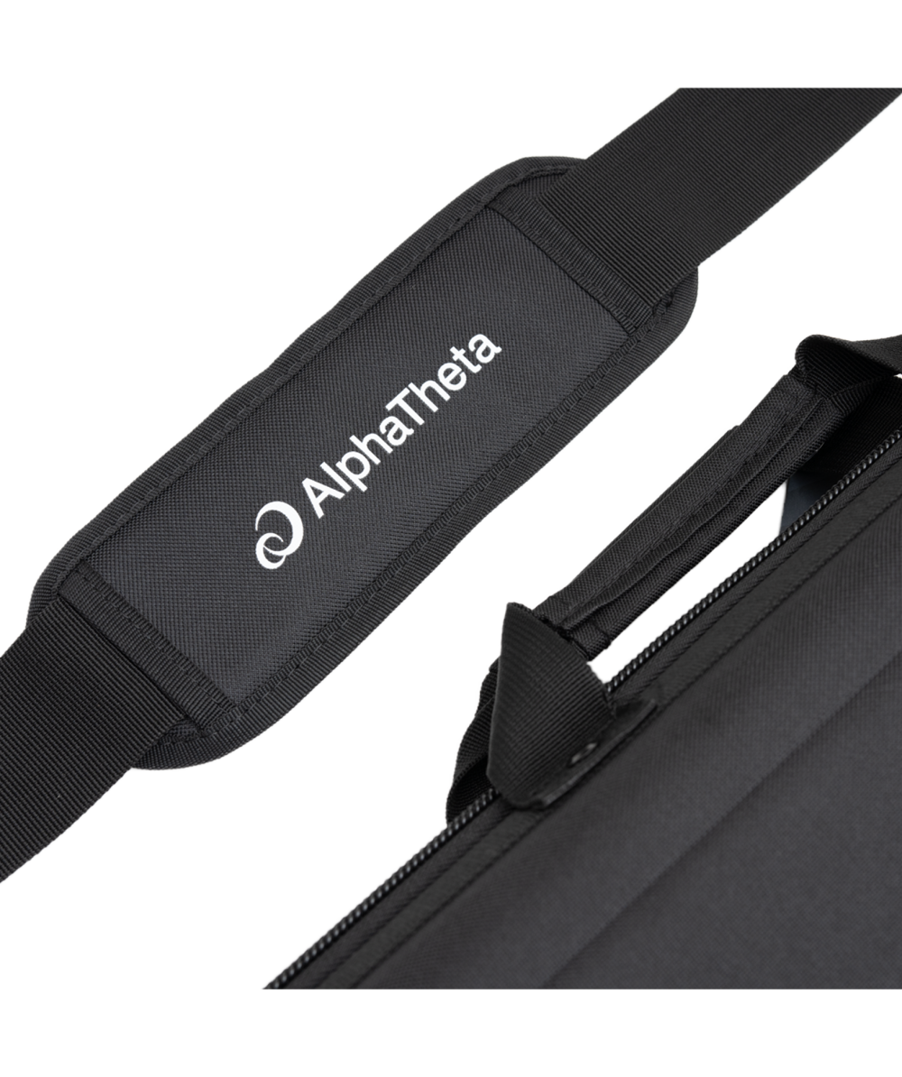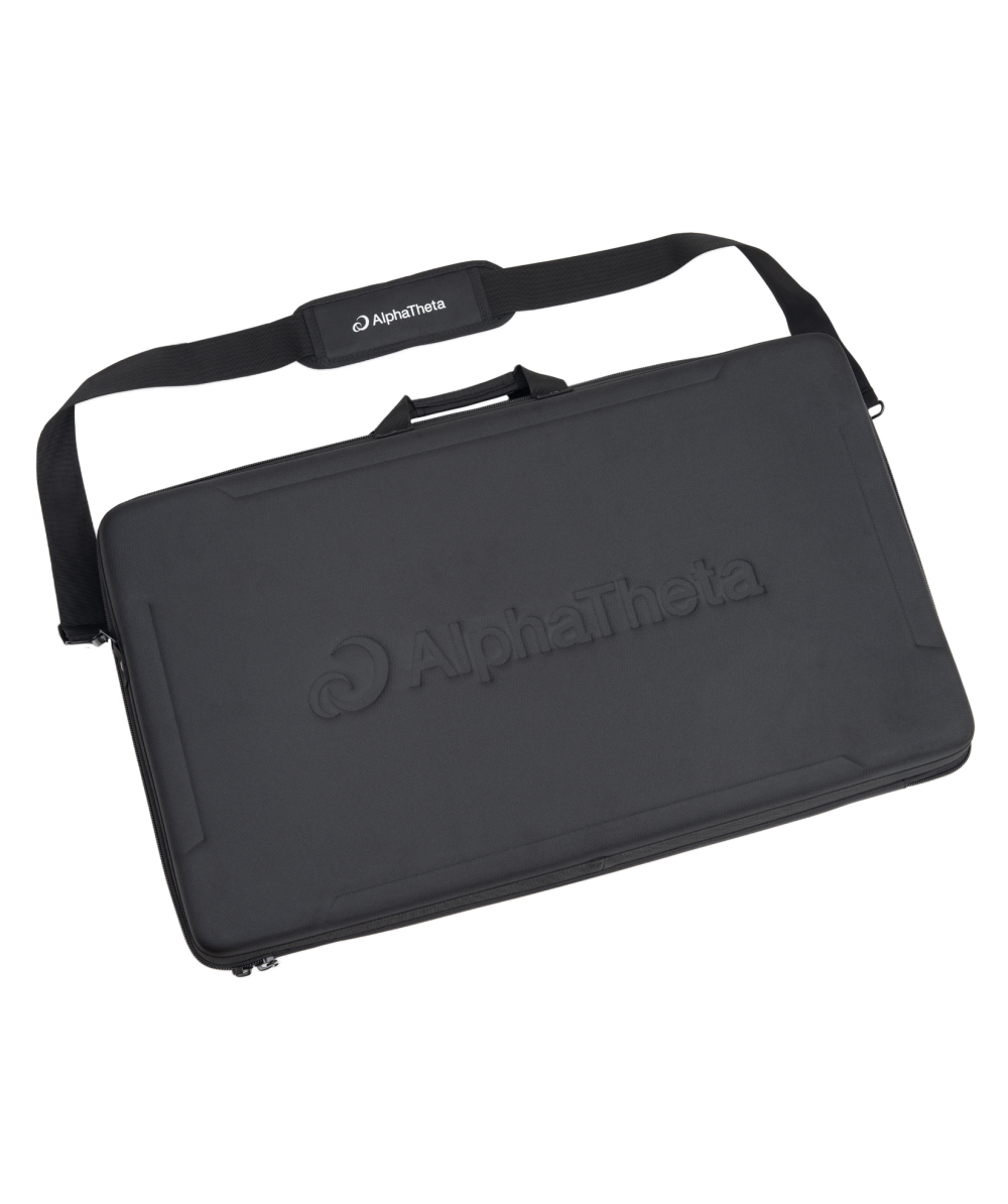 The AlphaTheta branded DJC-A3 bag allows for easy access of the top handle and extendable shoulder strap makes it easy to transport equipment to any location with ease and protection.