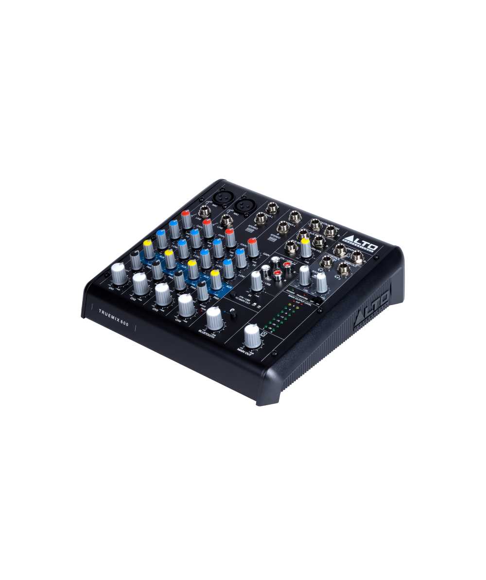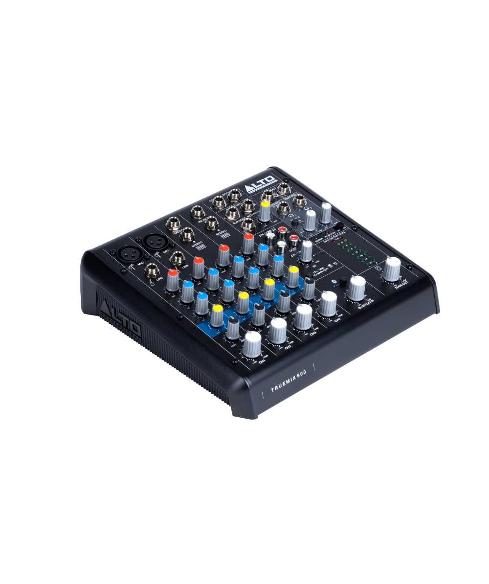 The Alto Professional TrueMix 600 is a portable audio mixer with Bluetooth and a built-in stereo USB audio interface that delivers all the essential features you need for home recording, livestreaming, podcasting, or performing. The TrueMix 600 features a dedicated Bluetooth channel for easily streaming from your personal devices. The Bluetooth channel also supports feedback-free phone pairing by utilizing mix-minus technology, a feature that no other audio mixer series in this class supports. There are six analog inputs with high-headroom circuitry for minimal noise and clipping in your signal. The Mic Input Channels offers XLR inputs that are great for connecting dynamic mics or condenser mics with 48v phantom power. These channels also have balanced ¼” line inputs for connecting instruments and other line-level signals. There are also two Stereo Input Channels, each with dual balanced ¼” TRS inputs. These inputs are perfect for your line level audio sources. All channels feature a two-band EQ with color coded knobs that make it easy to dial in your perfect sound while operating in low-light situations. Connecting the TrueMix 600 to your computer is also lightning fast, with plug and play connectivity on Windows and macOS. The TrueMix 600 is a feature-packed compact audio mixer that’s perfect for using on-the-go.