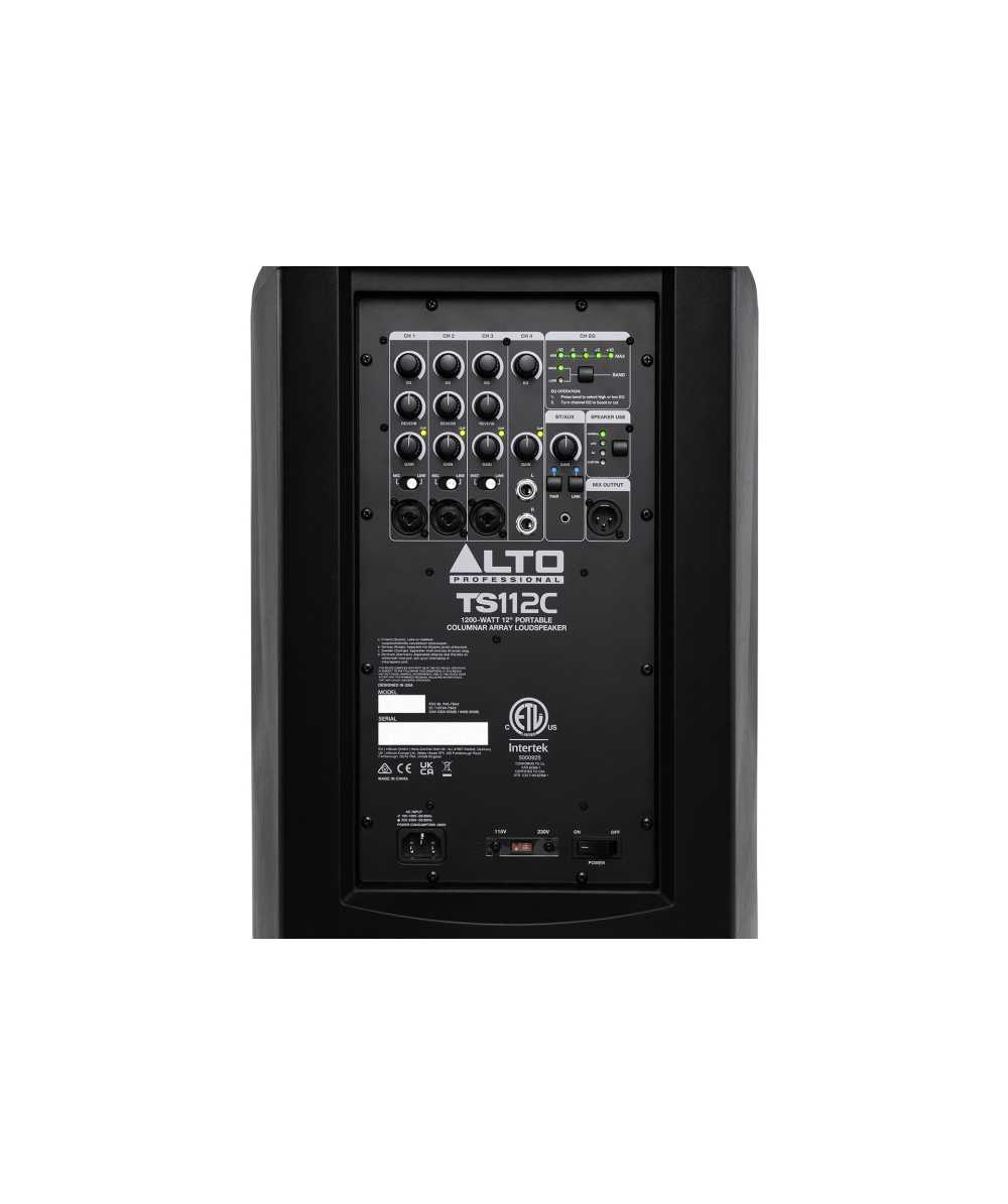 Alto Pro TS112C is a powerful, all-in-one column array PA speaker designed to deliver high-output, room-filling sound with the ease and portability today’s live performers, businesses, and event hosts can rely on.