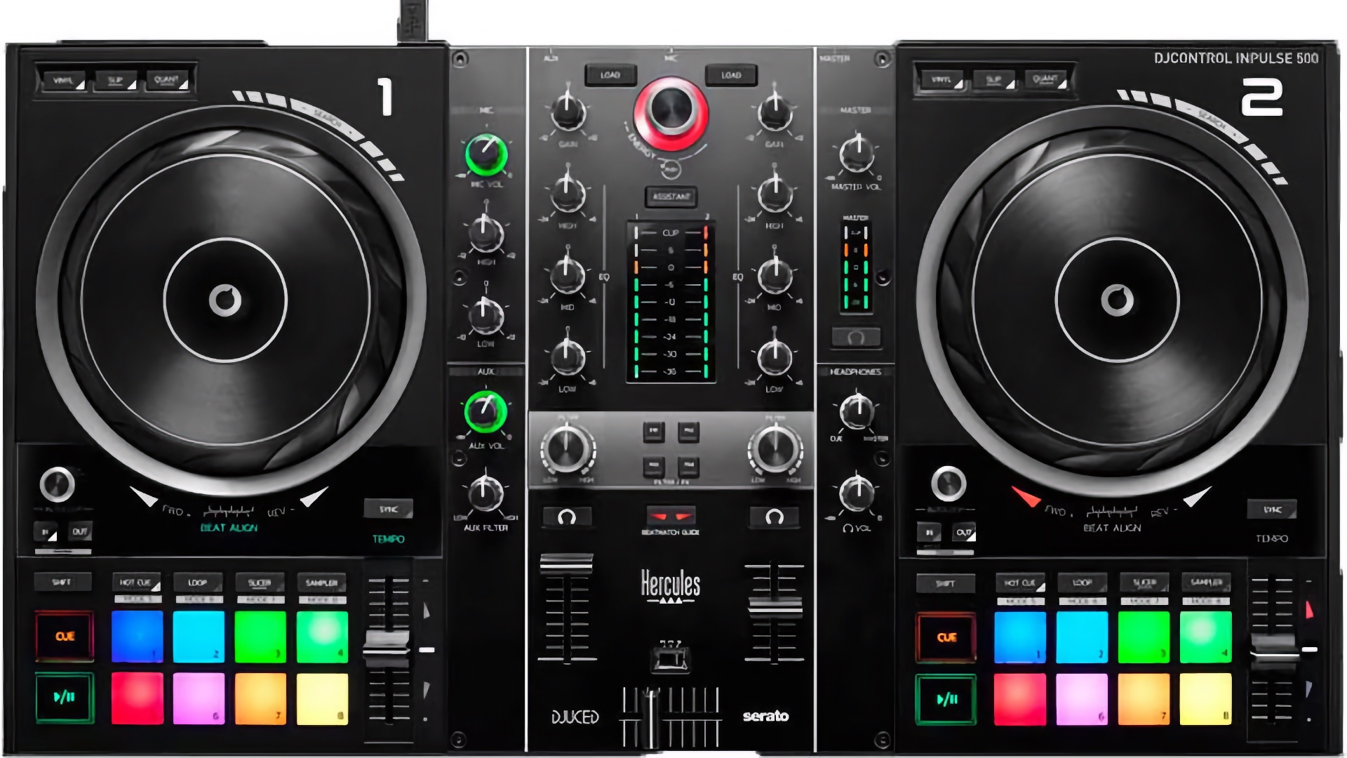 What the 500 gives is an enjoyable 2-channel mixing experience with large jog wheels and classic, intuitive controls. The Inpulse line doesn’t focus much on FX, so look elsewhere if that’s super important to you.