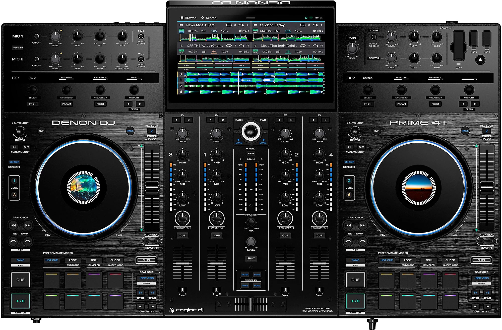 Many of the higher-end “DJ controllers” these days are actually standalone DJ hardware, meaning it doesn’t require the use of a laptop like everything else on this list. And in this category, my main recommendation is the Denon DJ PRIME 4+.