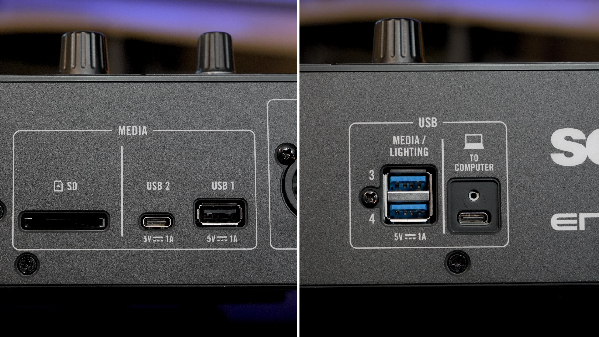 - Other USB: USB-C (computer) and 2x USB-A (media/lighting)