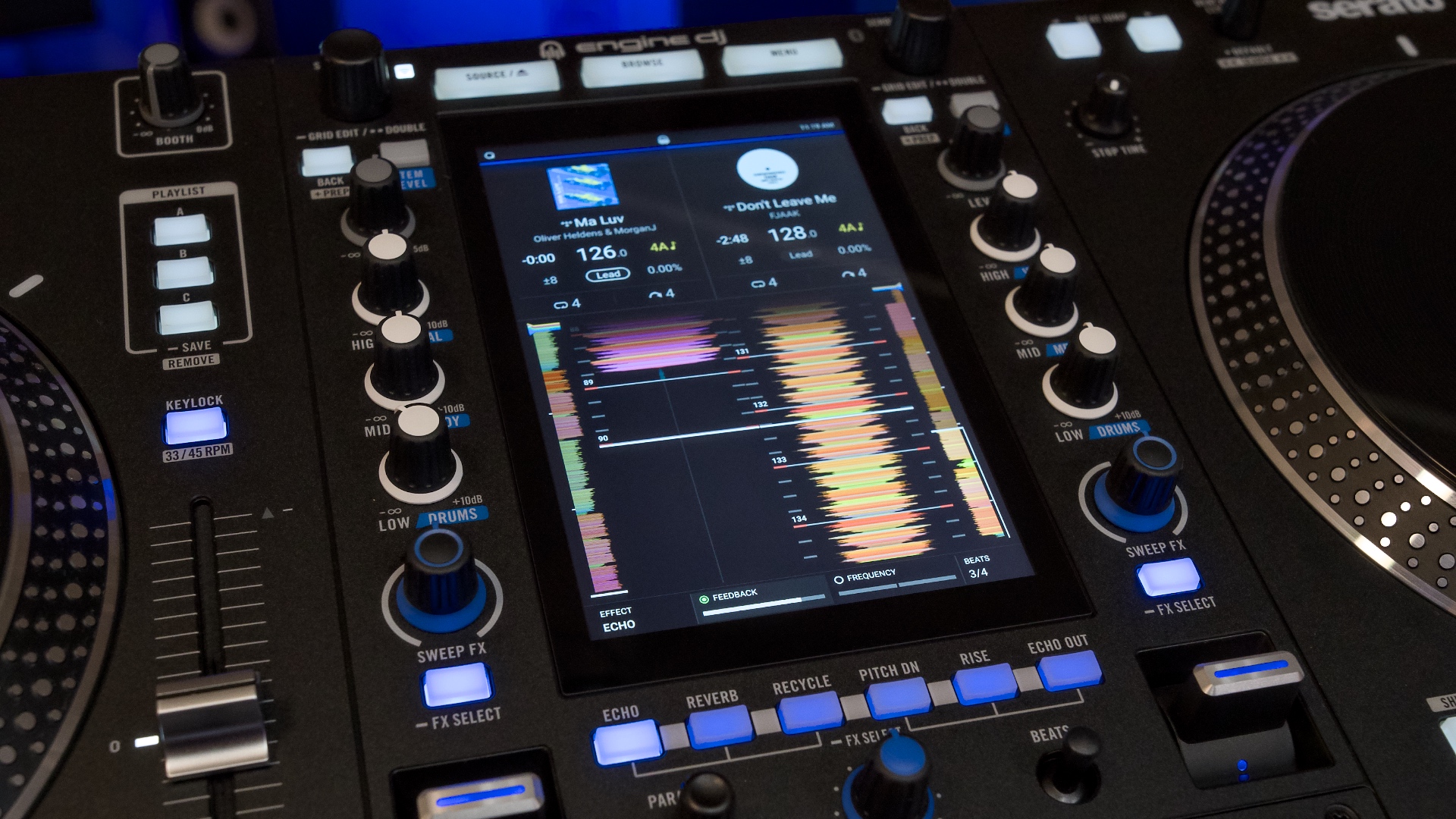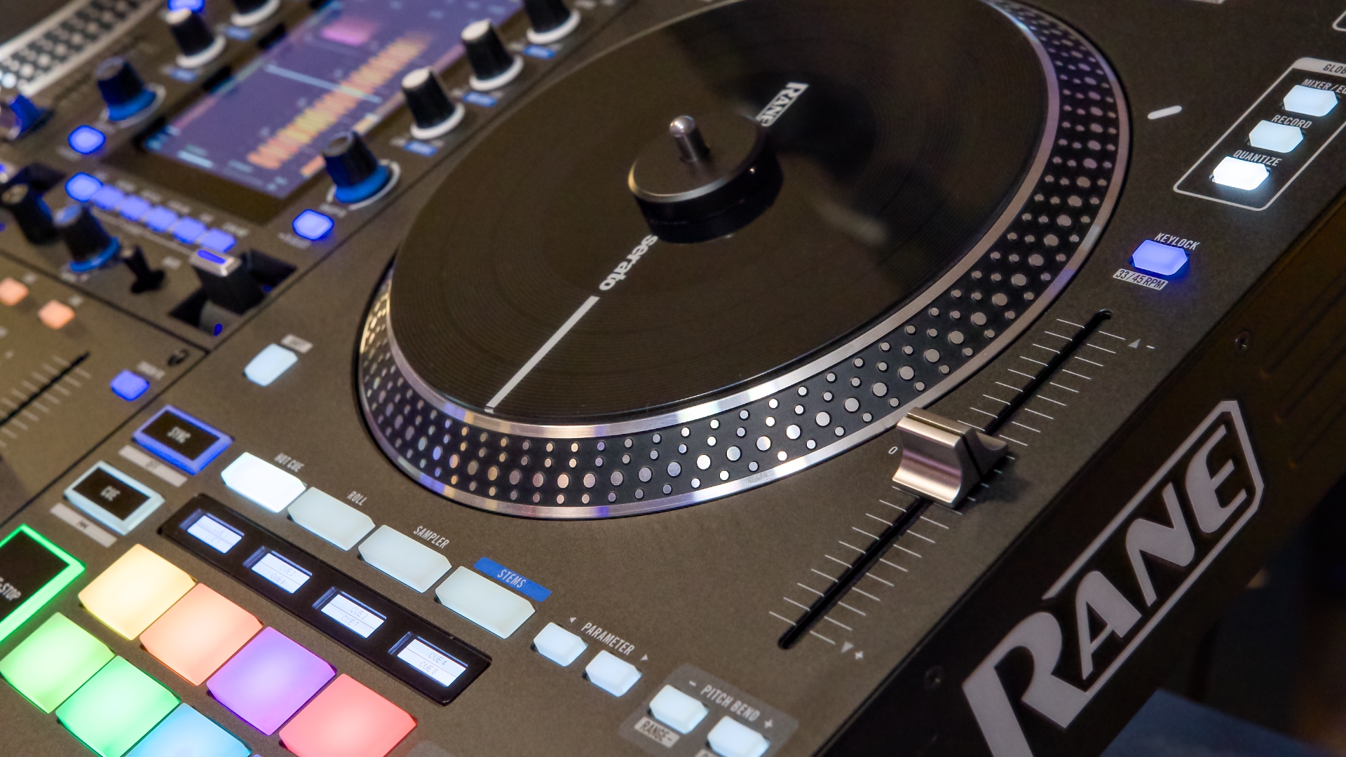 The most obvious difference between this and a RANE One is the addition of a high resolution 7” screen. It makes it feel like there’s a RANE Seventy-Two mixer in the middle.