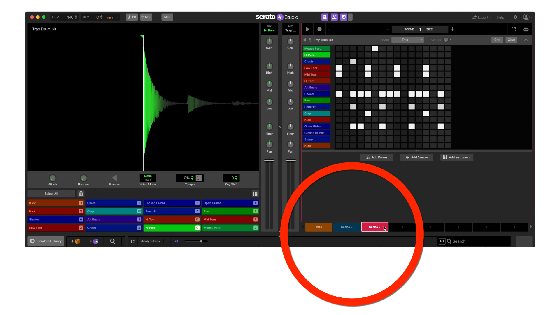 Like other loop-based production suites, Serato Studio works by building a single Scene at a time.