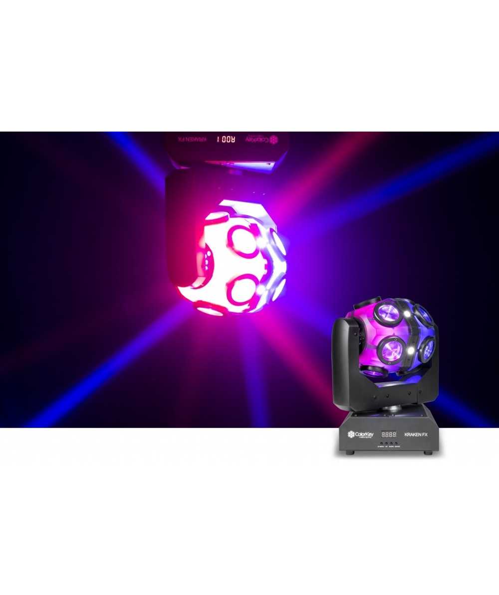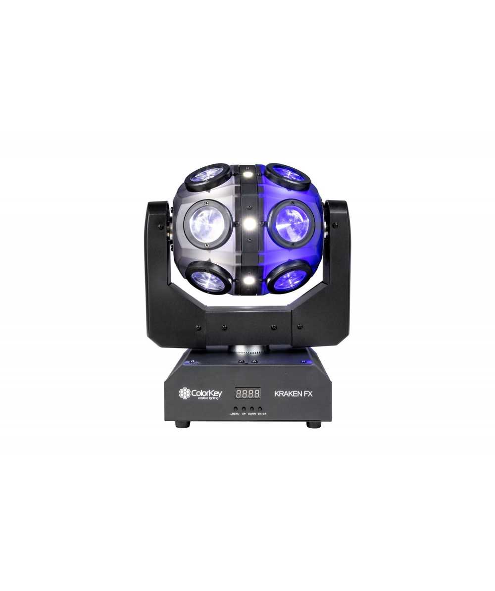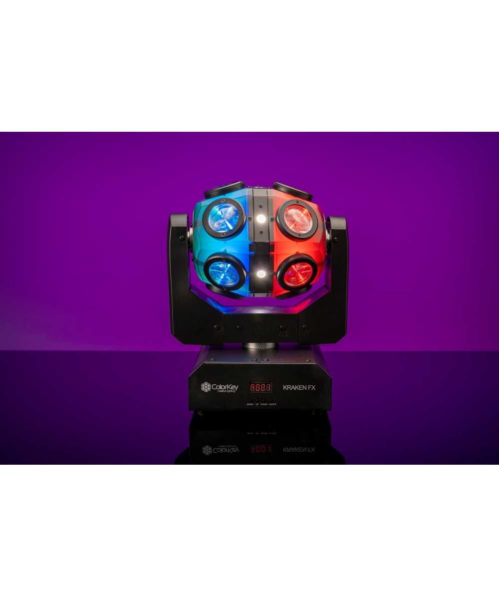 Perfect for Mobile DJ’s, Bars and Clubs, the ColorKey Kraken FX creates energy with its frenzied movement and tentacle-like beams of light. Featuring (7) 10W Red, Green, Blue and White LED’s positioned alongside a strobing LED strip, Kraken offers dizzying pan rotation and infinite tilt rotations allowing it to create a one-of-a-kind FX lighting experience.