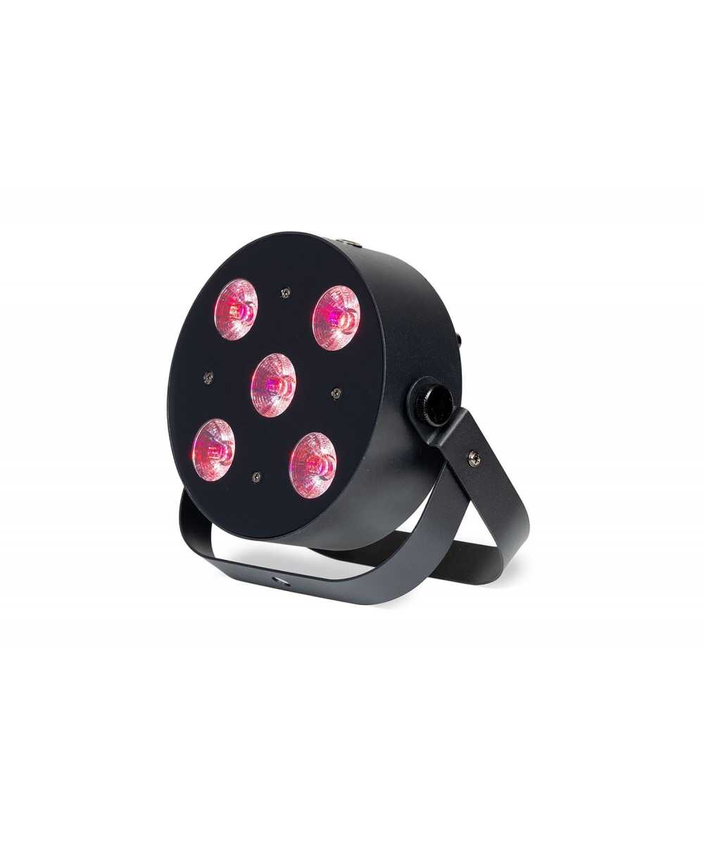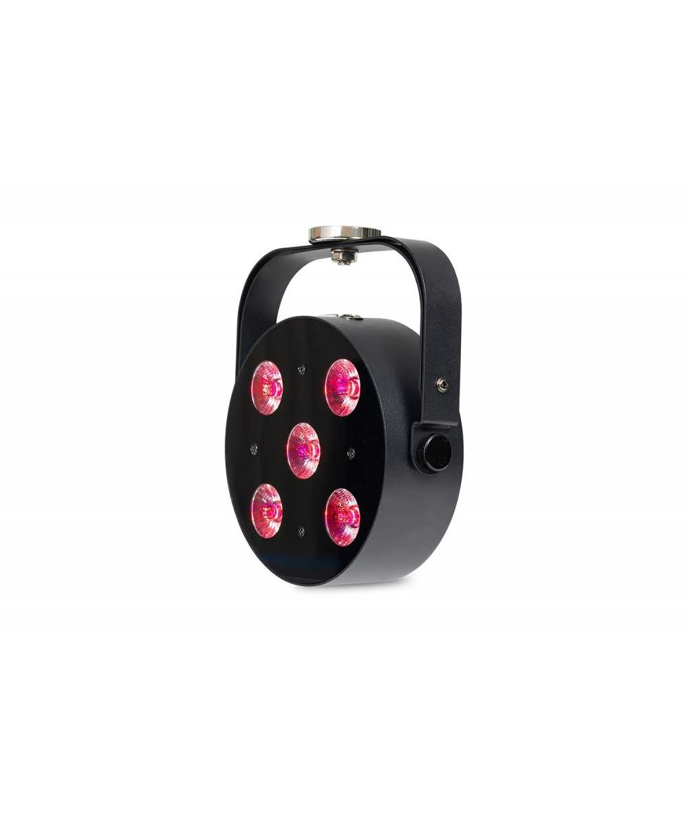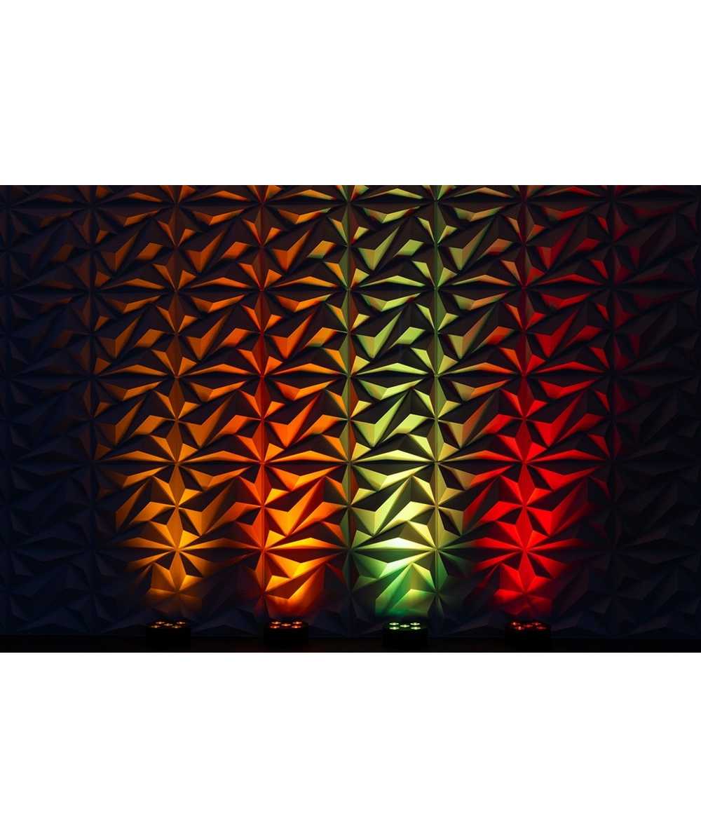 The MobilePar HEX 5 can be controlled via wireless DMX, an included RF remote, or an iOS app.