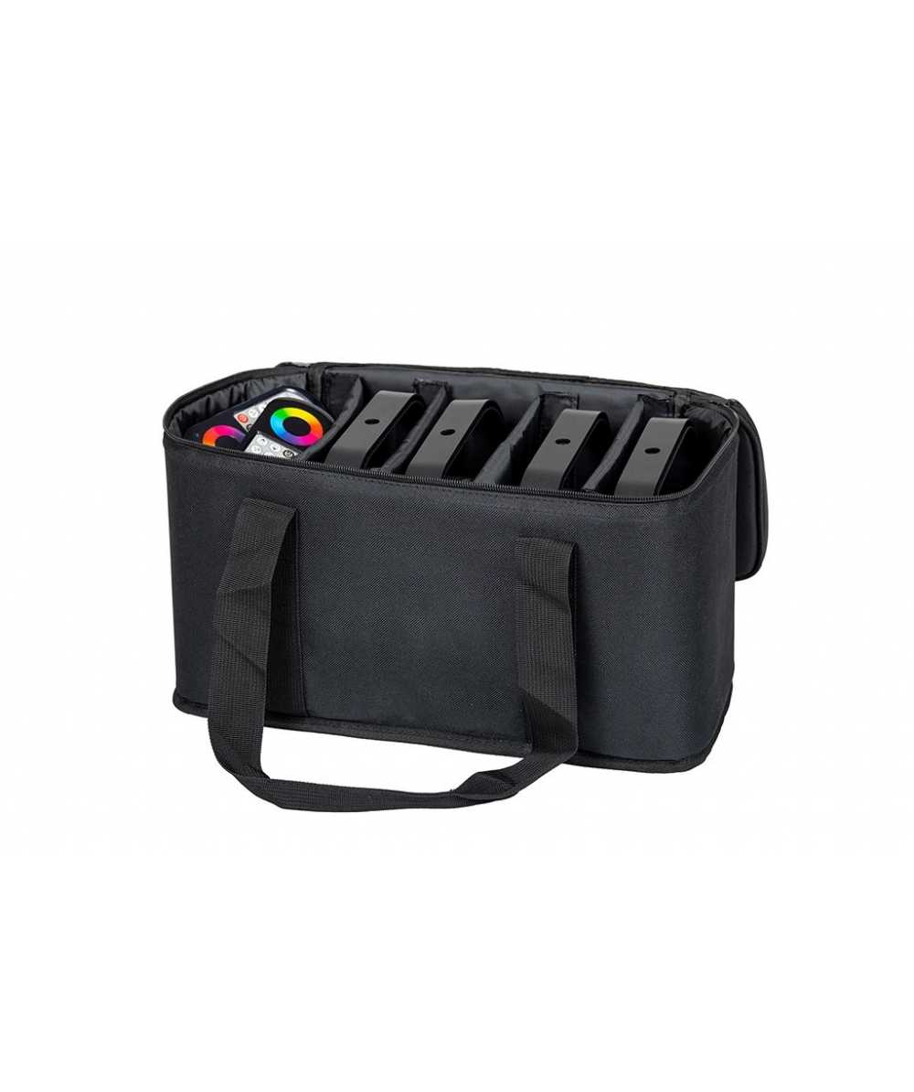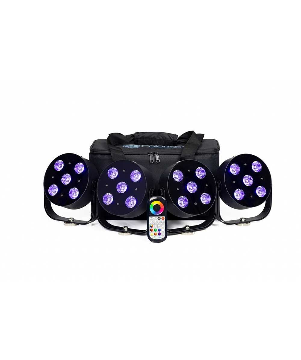 Your new complete go-to package for professional lighting on the move. This kit includes four compact, battery-powered LED par lights, each delivering vibrant color washes and advanced wireless control.