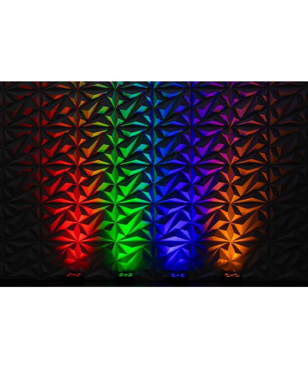 The user-friendly RF remote enables easy access to preset colors, sound-active modes, fades, strobe, blackout, and more. Set colors using the color wheel or presets.