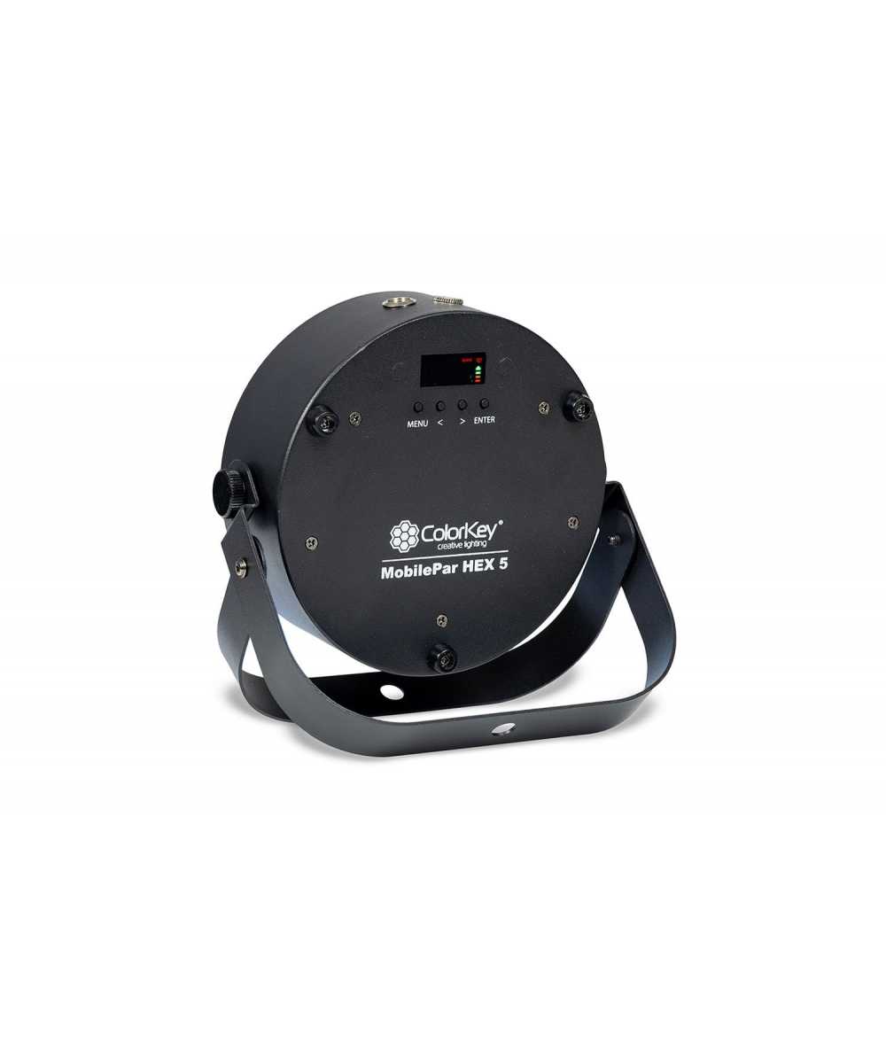 Weighing in at 2lbs, the MobilePar Hex 5 is the lightest and smallest uplight ColorKey has ever made. It is available individually, in a compact 4-pack with carrying bag, and in an 8-pack with a robust charging road case trolley with extendable handle.