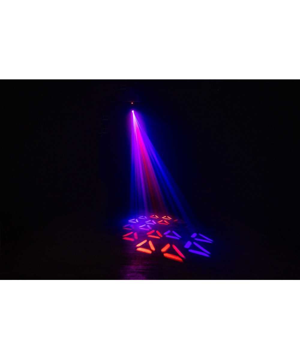 Transform any venue into a visual masterpiece with 12 gobo patterns at your fingertips. Create a breathtaking ambiance with a wide range of patterns and textures that can be tailored to suit your event’s unique atmosphere. An 18-facet prism with rainbow effect adds a touch of sophistication and complexity to your visuals, creating an intricate multi-beam light show.