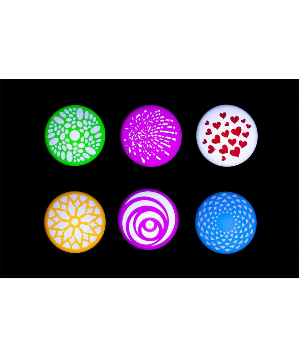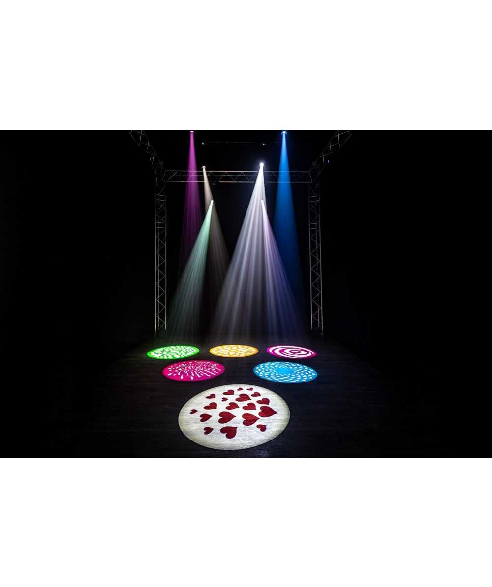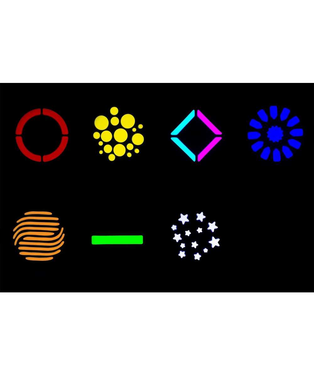 - **Diverse Gobo Options** Explore Your Creativity with 7 Static Metal Gobos and 6 Rotating Glass Gobos. Create mesmerizing visual effects with a wide array of intricate patterns and designs, tailored to suit any event or setting.