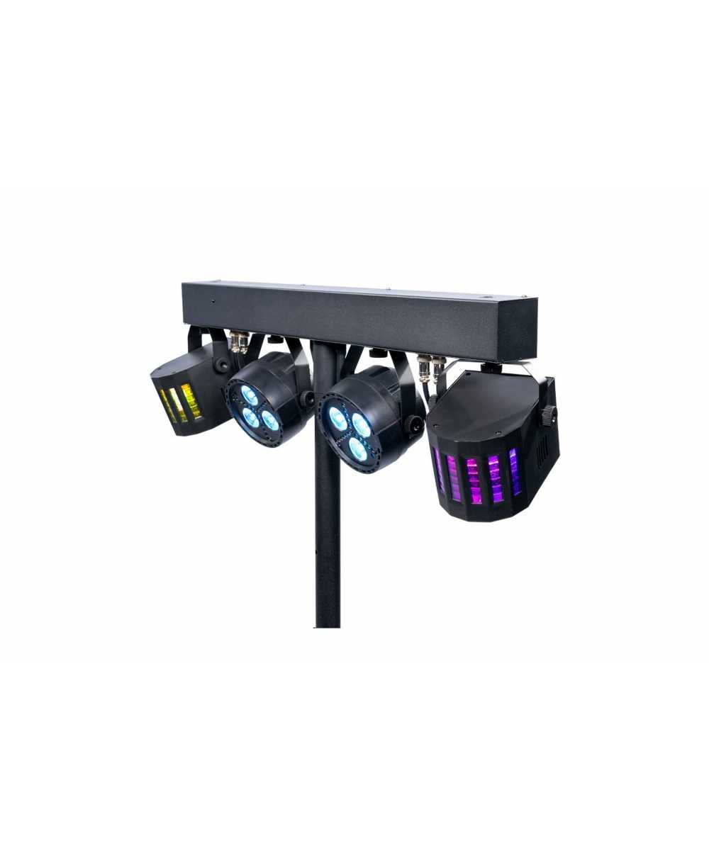 Your new best friend, the ColorKey PartyBar GO, boasts up to 4 hours of battery life powering two 3x3W LED RGB Pars, each with 21 Pcs White LED strobe inlay, alongside two 4x3W RGBW Derby style FX lights for a dazzling output of light and movement.