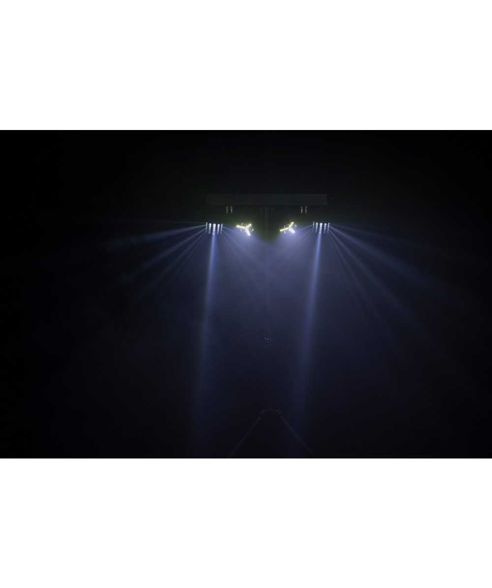 - (2) 3x3W LED RGB Pars each w 21 Pcs White LED strobe inlay