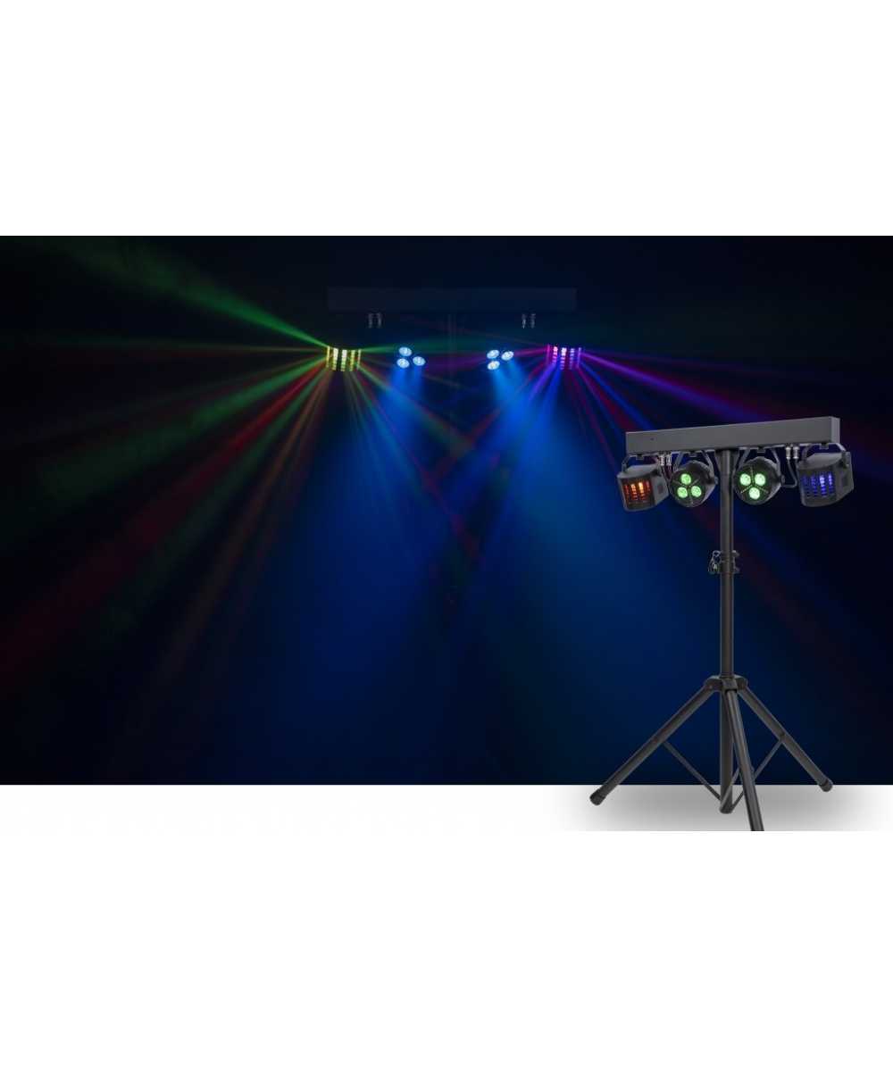 An included 7ft lighting stand lifts the PartyBar GO system high for maximum area coverage, while still being compact and light enough to freely move your system around the room.
