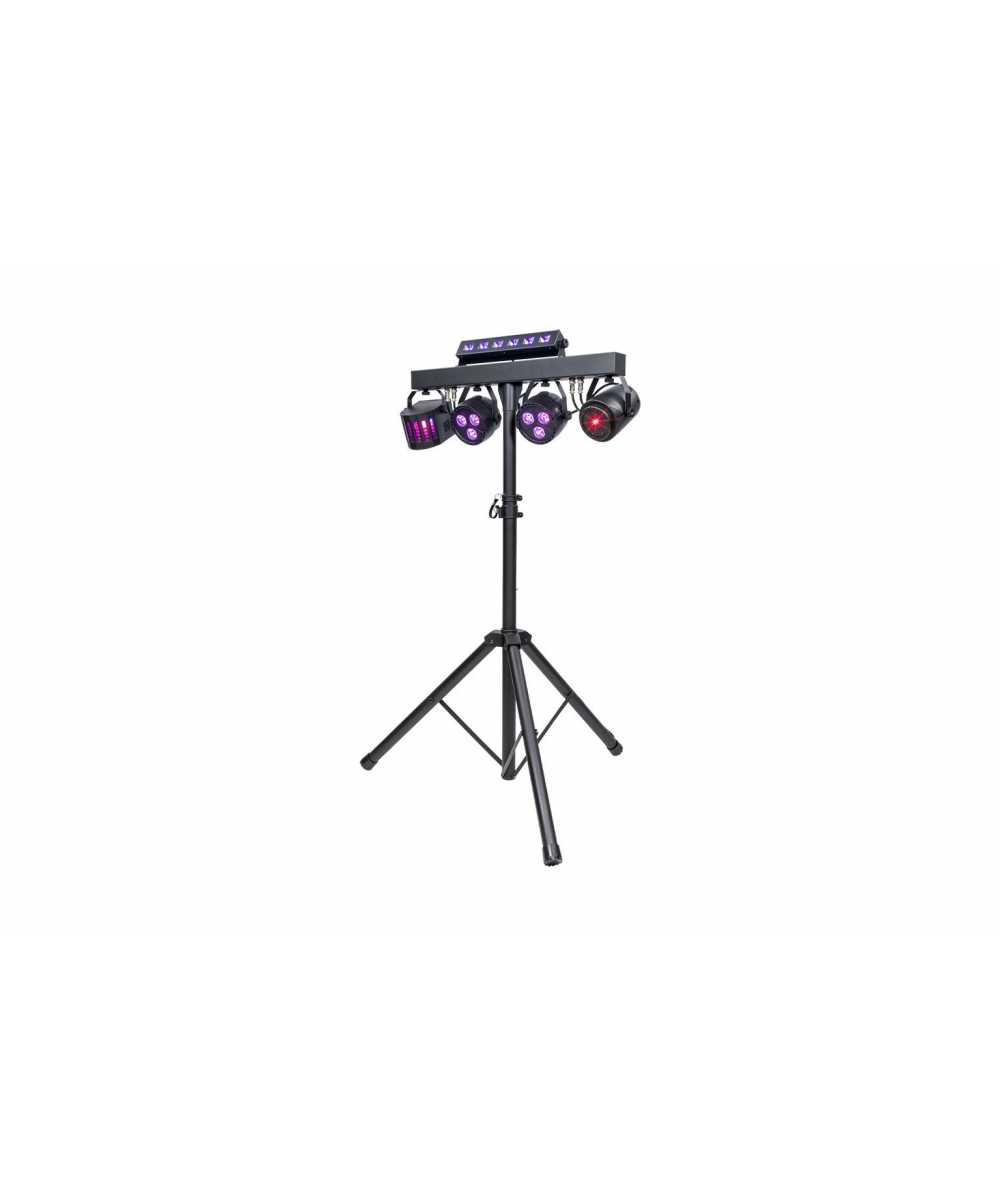 An included 7ft lighting stand lifts the PartyBar FX system high for maximum area coverage, while still being compact and light enough to freely move your system around the room.