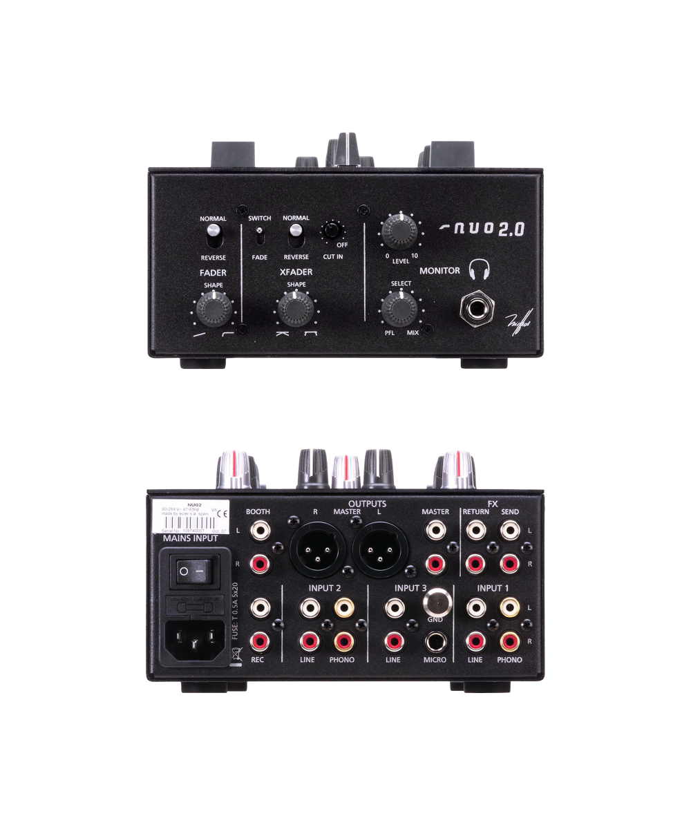 The NUO 2.0 is a 2 channel analogue mixer addressed to the profesional DJ of any kind, in despite of the music style. It features the professional characteristics that made its predecessors acclaimed worldwide, and it equips the best analogue components available in the market place in order to obtain the highest Sound performance.