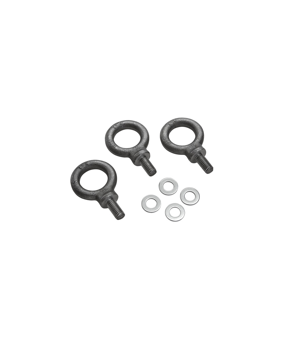 Set of three eyebolts designed to allow safe hanging of an Electro-Voice ELX200 speaker in live stage, theater, and club venues