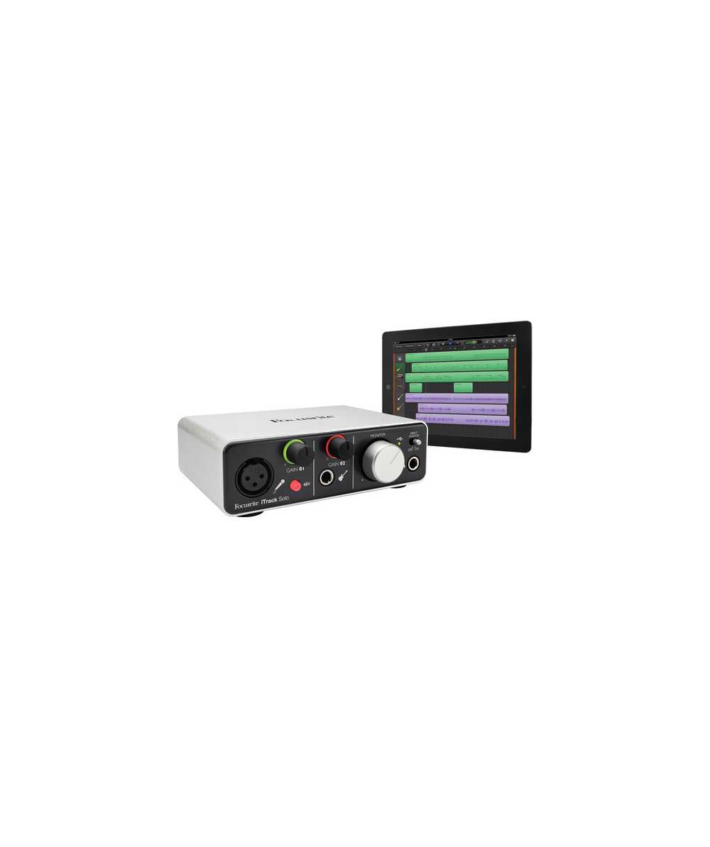 The iTrack Solo (Lightning) from Focusrite is a 2 input/2 output USB audio interface that provides an easy way to record instruments and vocals to a Lightning compatible iPad, or a Mac or Windows based computer. Featuring a Focusrite microphone preamp, the interface is housed in a compact, rugged but lightweight aluminum case, and is an excellent companion for any singer-songwriter who wants to record their creations or practice.