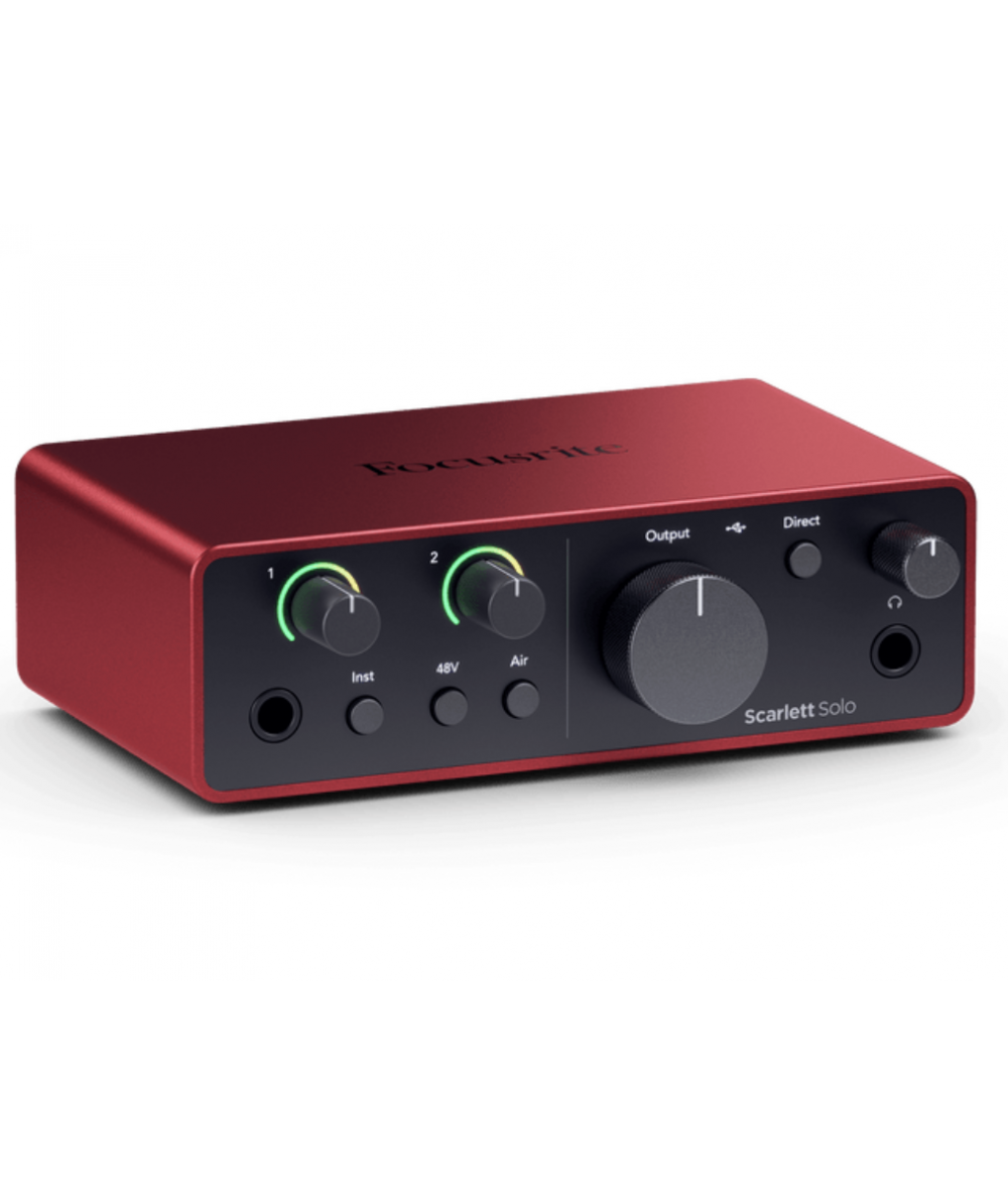 Bring studio sound to wherever you make music — just plug in, record, and produce finished tracks with the best sound you've ever heard. Scarlett Solo features a detailed mic preamp, a dedicated guitar input that feels just like you're plugging into an amp, a powerful headphone output, and Air Presence and Harmonic Drive modes for that big-console sound.