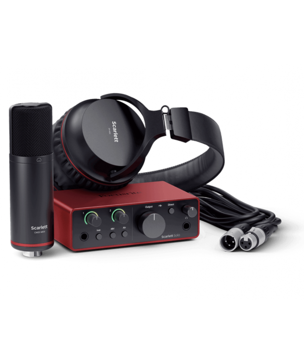 Get everything you need to make your first hit song, right now. Connect the included condenser mic to Solo’s detailed, ultra-low-noise mic pre and it sounds great right away. Plug a guitar into the instrument input. It feels just like an amp. Then listen in stunning clarity with the SH-450 headphones.