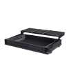 - Gliding laptop platform with laptop straps and cable access port