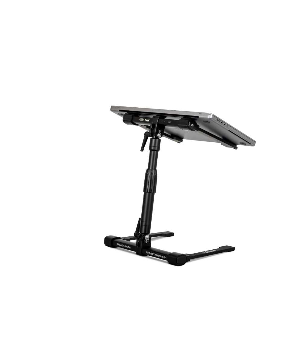 The Headliner Gigastsand USB+ is a fully adjustable laptop stand with integrated high-speed USB hub. Designed for DJ’s, Musicians, Performers, and Creators, this 2-in-1 device will save space on your workstation and in your bag by combining two integral parts of your setup.