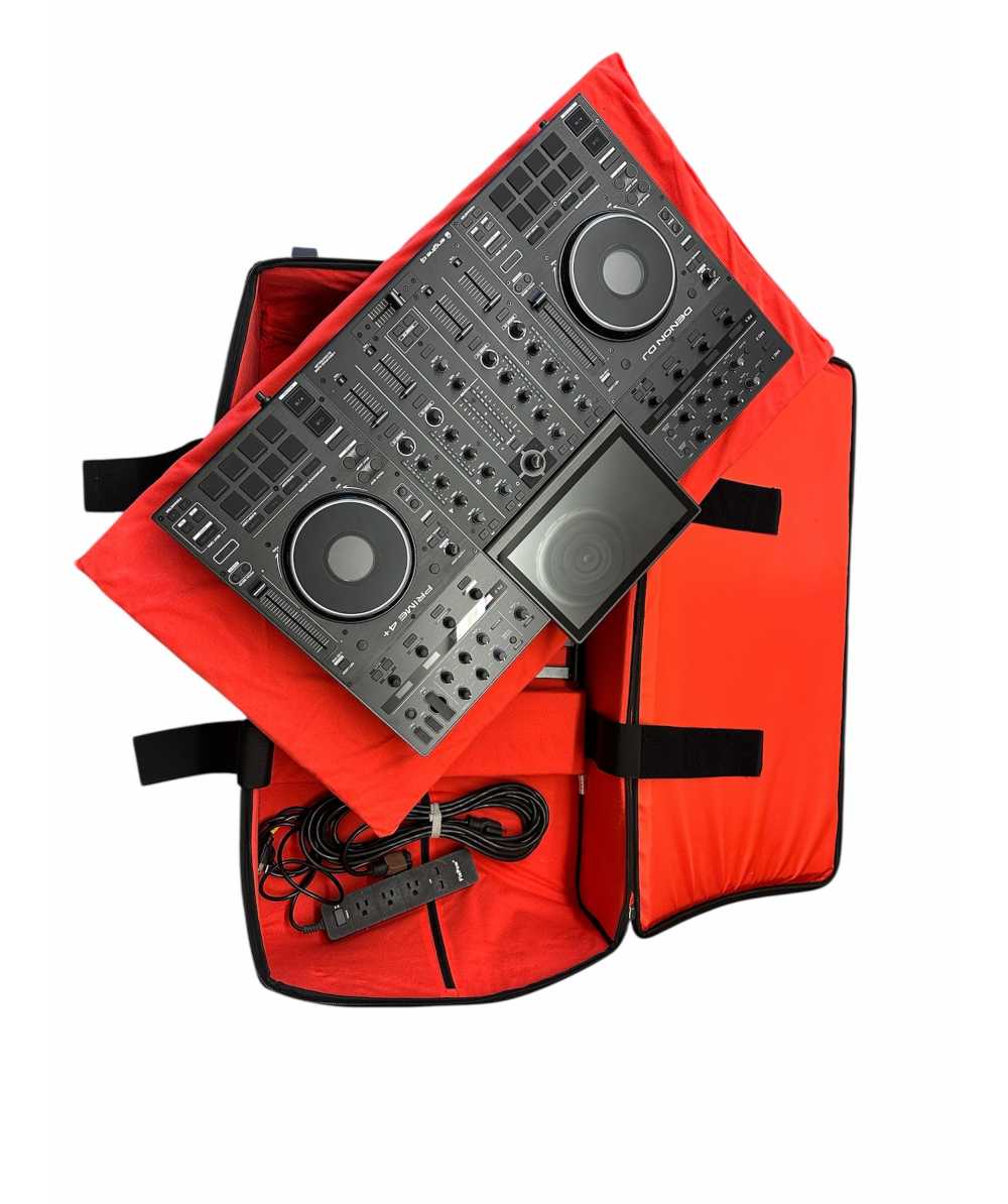 The GLIDE XL is a premium Roller Bag, innovatively designed to accommodate most extra-large controllers, all-in-one DJ controllers on the market. With it’s size, it even has enough room to carry two CDJs or two turntables. The Glide XL also features multiple compartments to ensure you have room for all the extras accessories you'll need for your gig. The Glide XL is built with high grade material and ample interior padding to provide unmatched protection compared to similar soft cases. And with a premium telescoping handle, rollerblade style wheels for smooth gliding, and handles on every side, the Glide XL will move much better than our clunky flight case.