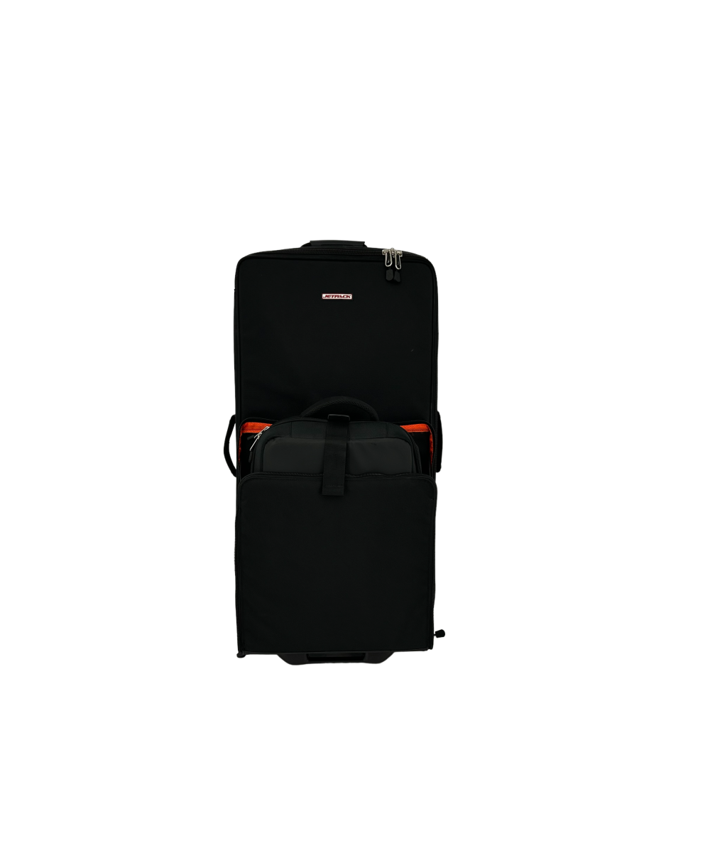 The SNAP can be used for your Laptop and Essentials, or as a standalone bag. The SLIM has many classic JetPack features, including space for a 17" laptop, floating headphone compartment, and room for accessories and digital media. The SNAP is padded all around, with EVA padding to keep your gear protected. The interior is a bright, durable, ripstop lining that makes it easy to find your gear in darker settings. It's ultra-slim profile makes it perfect for uses a day bag. As with all Snap Series products,, the SNAP backpack is made to fit perfectly in the front pocket of the Glide roller bag. This positions SNAP at a lower center of gravity allowing both bags to be rolled together with ease. The SNAP also has a luggage pass through sleeve so it can sit on top of the Glide as well.