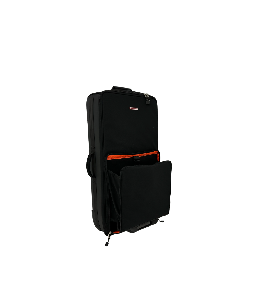 The GLIDE is a premium Roller Bag, innovatively designed to accommodate most full sized DJ controllers on the market. The Glide also features multiple compartments to ensure you have room for all the extras accessories you'll need for your gig. The Glide is built with high grade material and ample interior padding to provide unmatched protection compared to similar soft cases. And with a premium telescoping handle, rollerblade style wheels for smooth gliding, and handles on every side, the Glide will move much better than our clunky flight case.