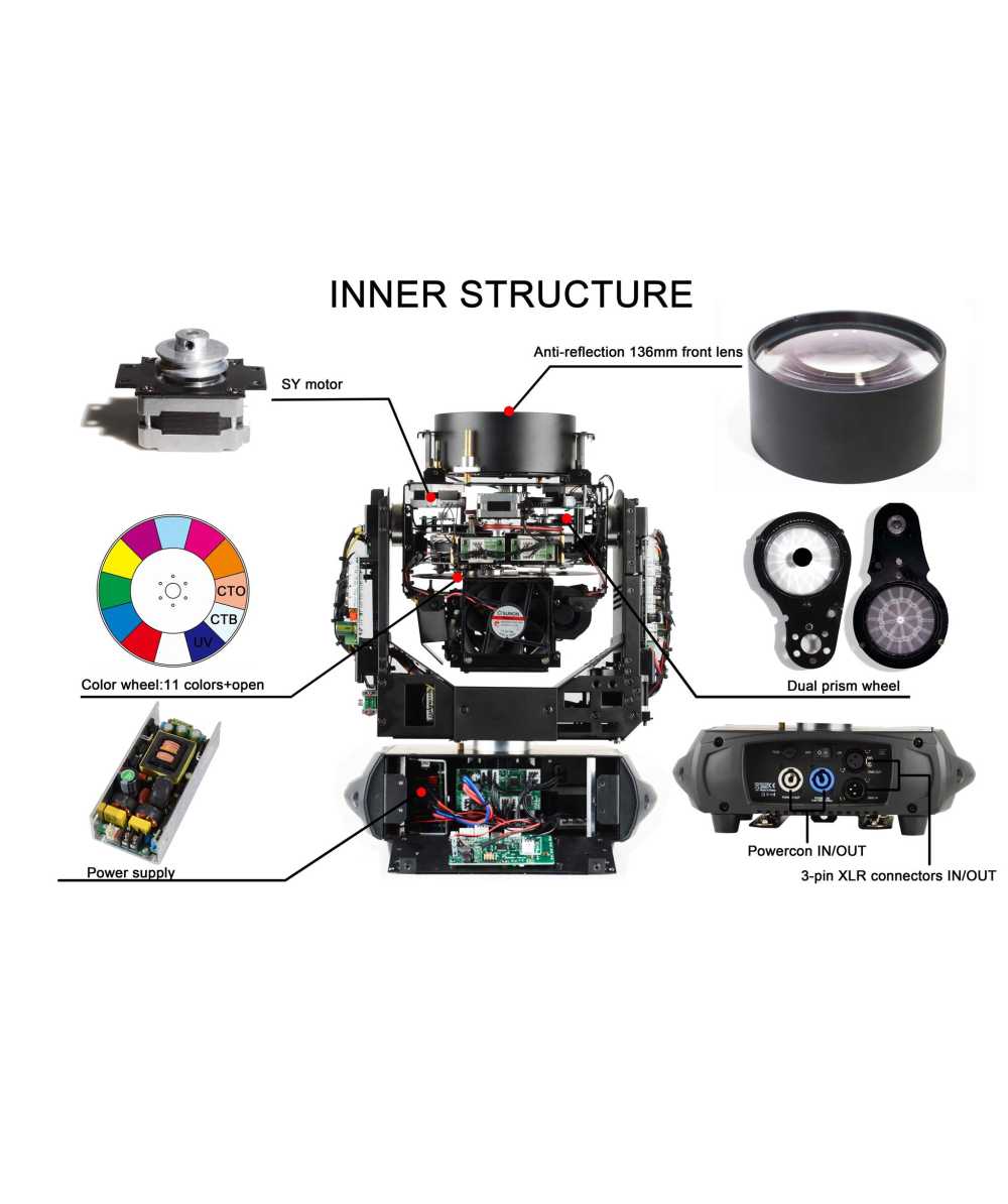 The JMAZ ATTCO BEAM 230 features a powerful 231W OSRAM SIRIUS HRI discharge lamp, delivering up to 164,230 lux at 10m. It includes an 11-color wheel, 16 static gobos, dual prism wheels, and a frost filter for versatile effects. With a 2.5° beam angle, electronic focus (2.5m-30m), and DMX512 or RF remote control, it’s ideal for impactful lighting. Includes RF remote, Omega bracket, powerCON, DMX cable, and safety accessories.