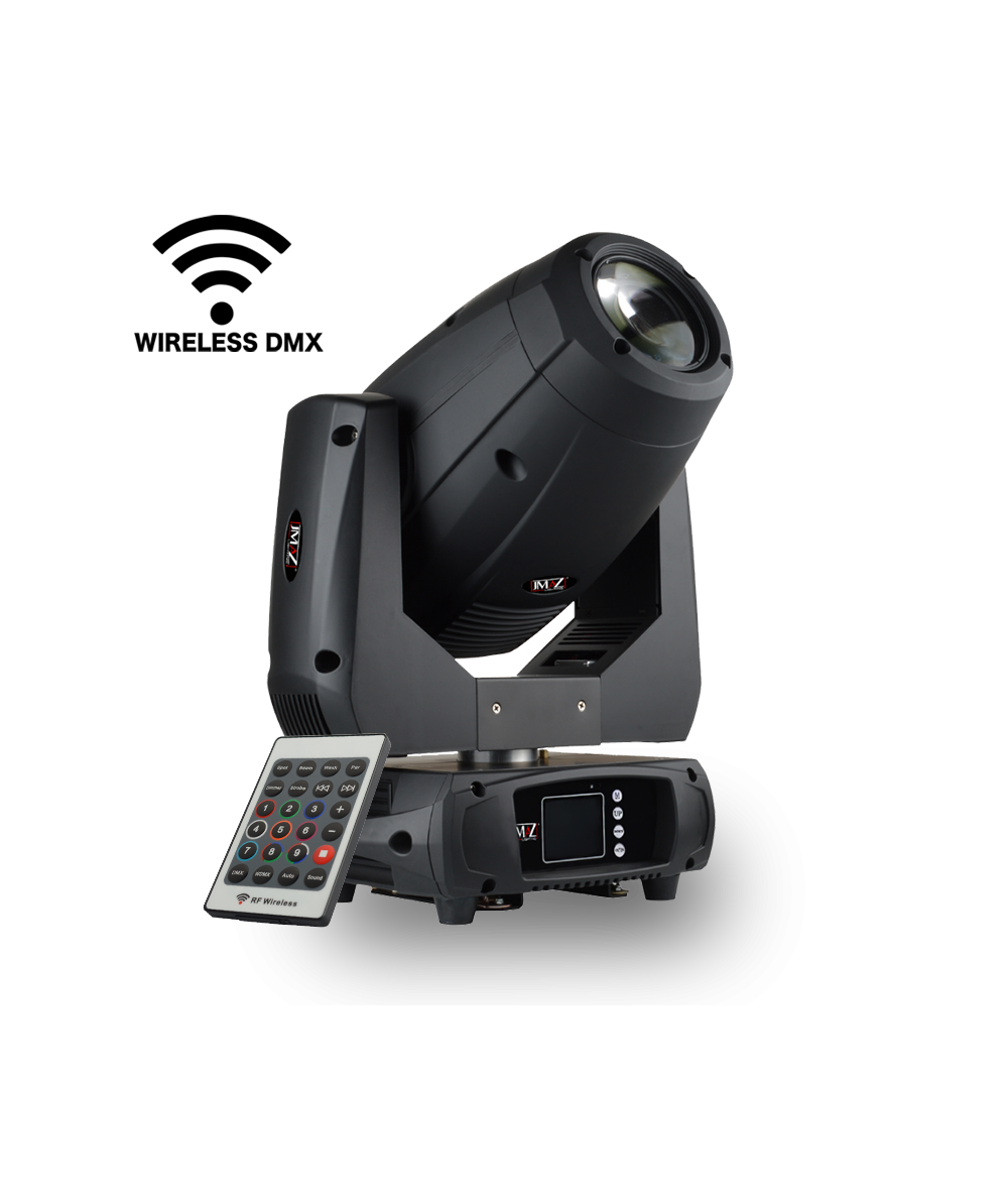 The JMAZ ATTCO SPOT 200 Moving Head delivers intense lighting with a 200W 7500K LED and a 16° beam angle. It features a 7-color wheel, 8 static gobos, 6 rotating gobos, and a 3-facet prism with adjustable speed and direction. With electronic focus, 9 auto/sound programs, and control via DMX512, wireless DMX, or RF remote, it’s versatile and easy to use. Includes RF remote, Omega bracket, powerCON, and DMX cables.