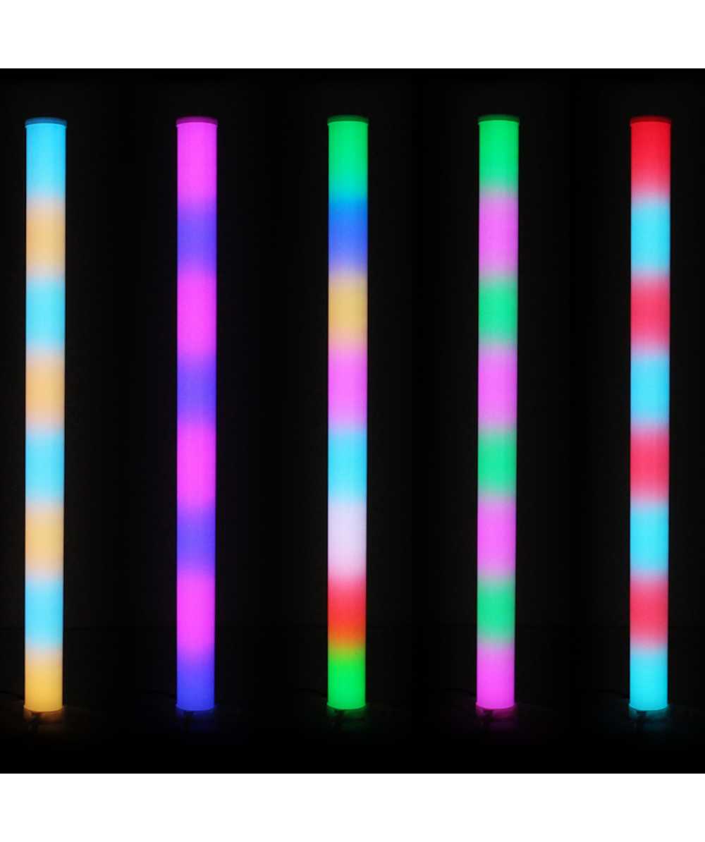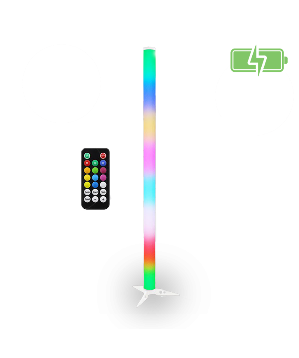 The JMAZ Galaxy Battery Powered 16W RGB LED Tube offers vibrant, portable lighting with 32 RGB SMD LEDs encased in durable UV-resistant polycarbonate tubing. It features a 12-hour battery life and multiple modes, including strobe, auto, fade, and sound active, all controlled by an IR remote. Easy to mount with a built-in clamp bracket, removable feet, magnets, and clips. Perfect for dynamic and versatile lighting setups.