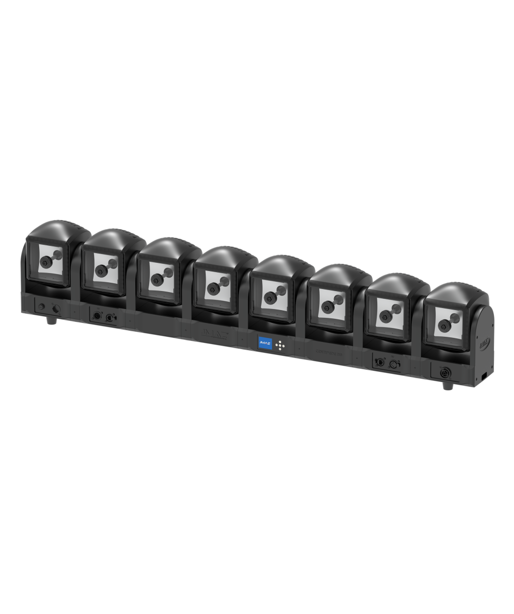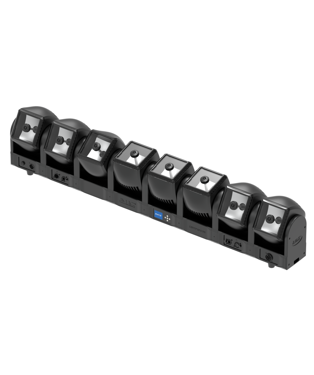 The JMAZ Professional Centipede B8 is an advanced moving head bar featuring eight powerful 60W RGBW LEDs and 240 RGB SMD LEDs for captivating multi-beam and ambient ring effects. Each head offers 360° infinite tilt and full pixel control, giving lighting designers the flexibility to create complex, high-impact visual sequences. With built-in virtual color presets and movement macros—plus foreground and background color separation—the Centipede B8 enables rich, layered effects without complex programming. Its narrow 3.5° beam angle ensures intense, focused output, while 16-bit RGBW color mixing and a CTO range of 2500K to 8000K allow for precise color control across any environment. Operate in four DMX personality modes (24/58/90/130 channels) and integrate effortlessly with major protocols including 5-pin DMX512, Art-Net, RDM, sACN, and Kling-Net. Designed for professional use, it features TRUE1 IN/OUT power connections and includes essential accessories: a TRUE1 power cable, 5-pin DMX cable, 2 omega brackets, 2 safety cables, and a manual. CE, cETL, FCC, and RoHS certified for global compliance.