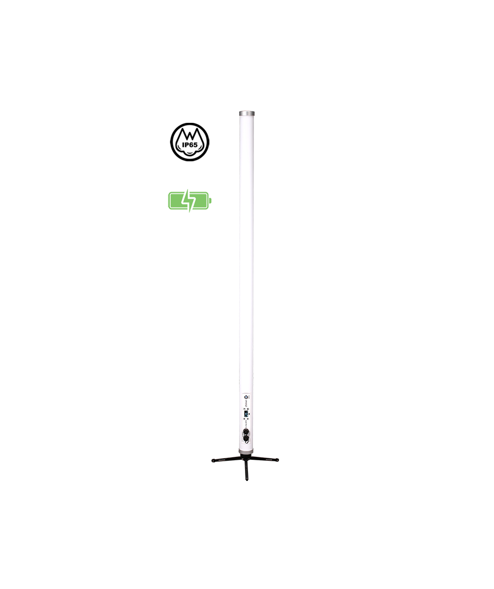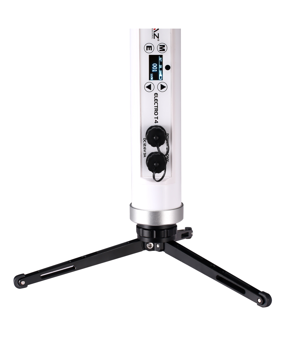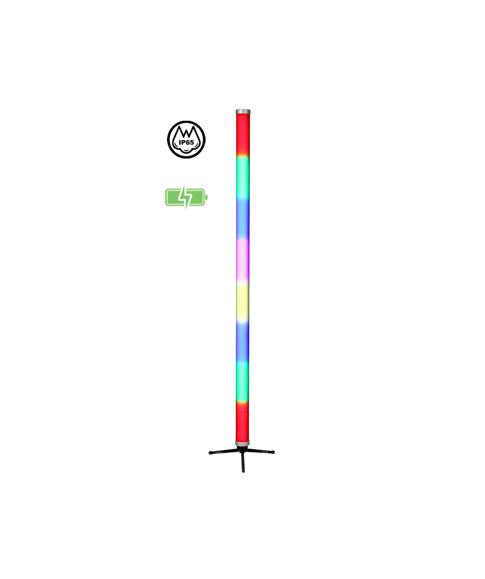 The JMAZ Professional Electro T4 is a versatile, battery-powered RGBW LED tube built for dynamic lighting indoors or out. Featuring 288 high-output SMD LEDs at 90W total, it delivers brilliant, even coverage with a wide 180° beam angle and 32-pixel control zones for precision effects. The fixture offers up to 15 hours of battery life—or 30 hours in battery saver mode—and fully recharges in just 5 hours. Designed for rugged environments, it boasts an IP65 rating and adjustable CTO from 2800K to 10000K for optimal white balance. Packed with creative potential, the Electro T4 includes 35 preset color programs, 4 advanced sound-active modes with 15 color variations, and 68 built-in auto/fade sequences. With 7 personality modes (2 to 128 channels) and compatibility with DMX512, wireless DMX, WiFi, and IR remote control, it fits seamlessly into any rig. Accessories include a tripod stand, tube extender, IR remote, DMX cables, charger, and more. Power connection is handled via a 5-pin socket. CE, FCC, and RoHS certified.