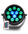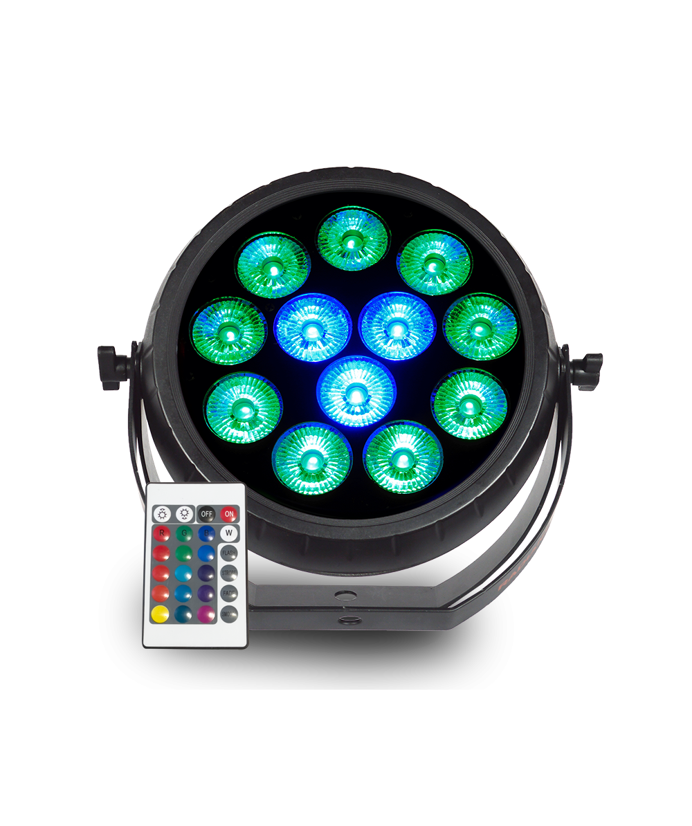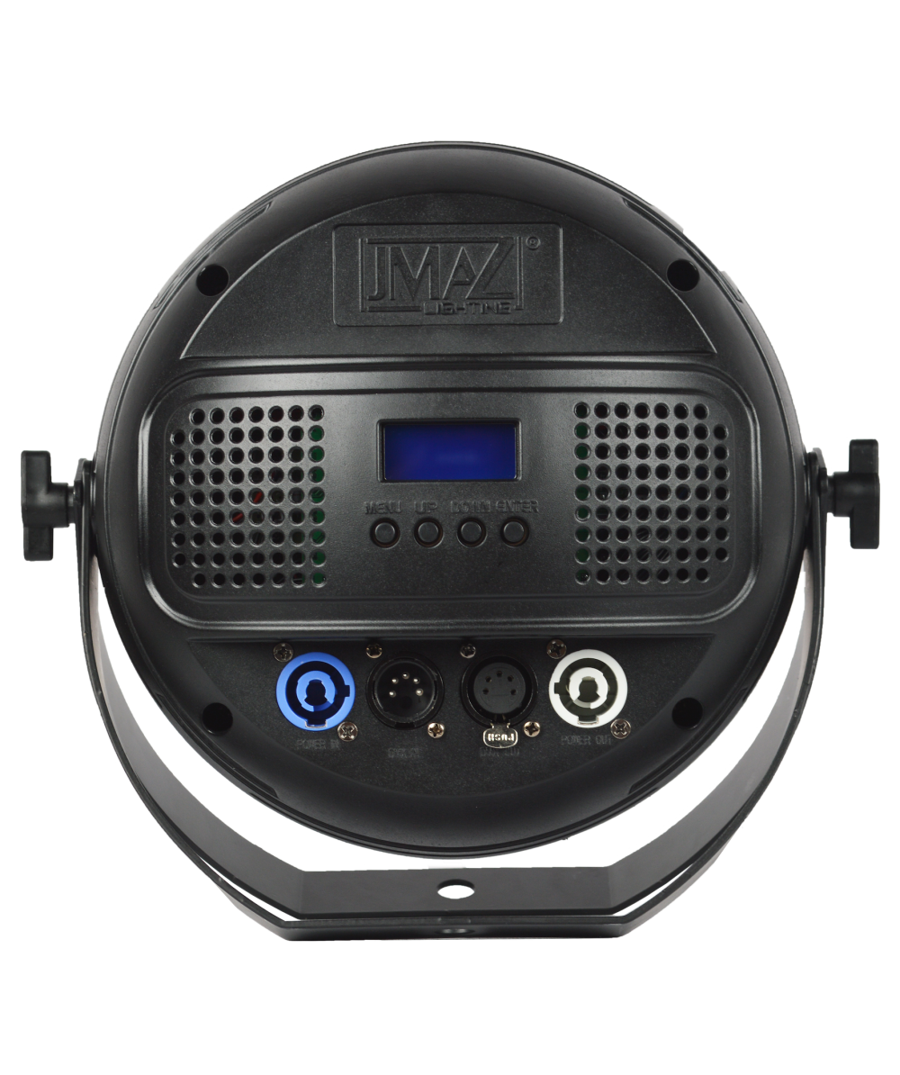 The JMAZ RADIANT PAR QUAD12 is a 120W RGBA LED wash light with a broad CCT range of 2800K – 8000K and a 60° wash beam angle. It features a dynamic ring effect, 25Hz strobe, 15 preset color programs, 12 auto programs, and 11 advanced sound active modes. Compatible with 5-pin DMX512 and IR remote, it includes powerCON In/Out, an IR remote, powerCON cable, and DMX cable for flexible lighting setups.