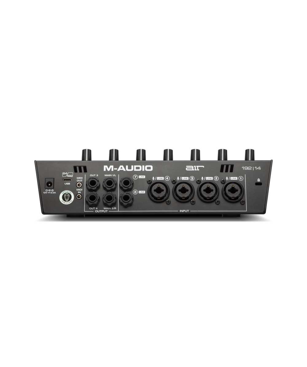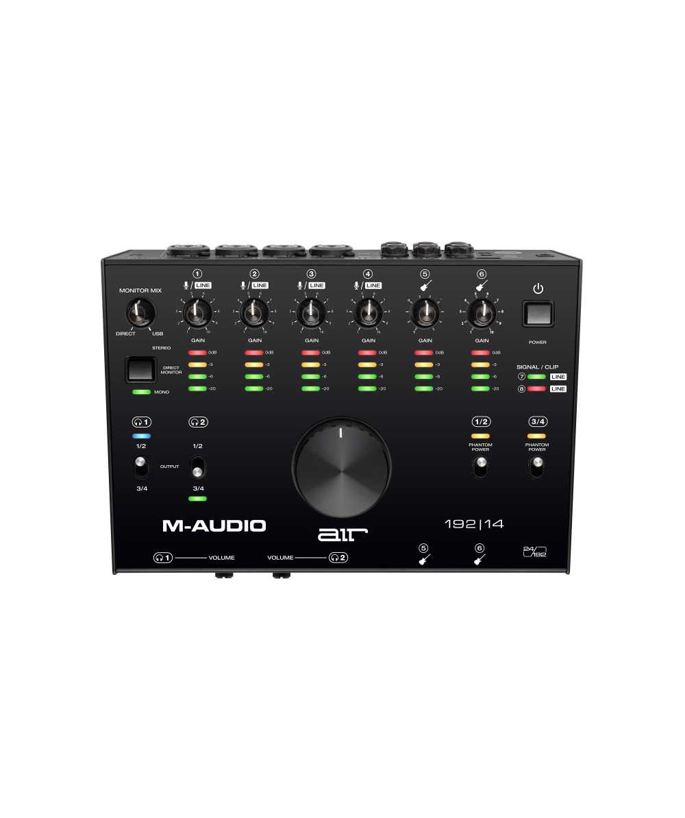 The M-Audio AIR 192|14 is an 8-in 4-out feature-packed USB audio/MIDI interface that provides all of the connections and software you need to easily create professional 24-bit/192kHz studio-quality recordings. The AIR 192|14 features (4) XLR+¼” TRS combo inputs, (2) ¼” line inputs and (2) ¼” instrument inputs that have a specially designed gain and impedance stage to provide the most accurate representation of your guitar or bass when plugged directly into the interface. There is also MIDI input and output connections so you can connect any external midi gear that you may have such as external sequencers, drum machines and controllers