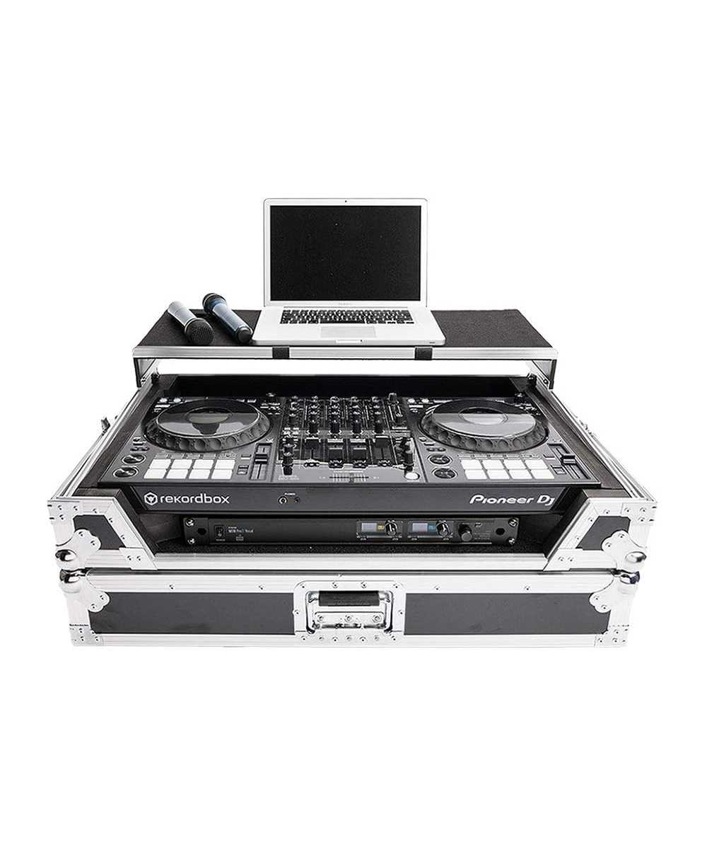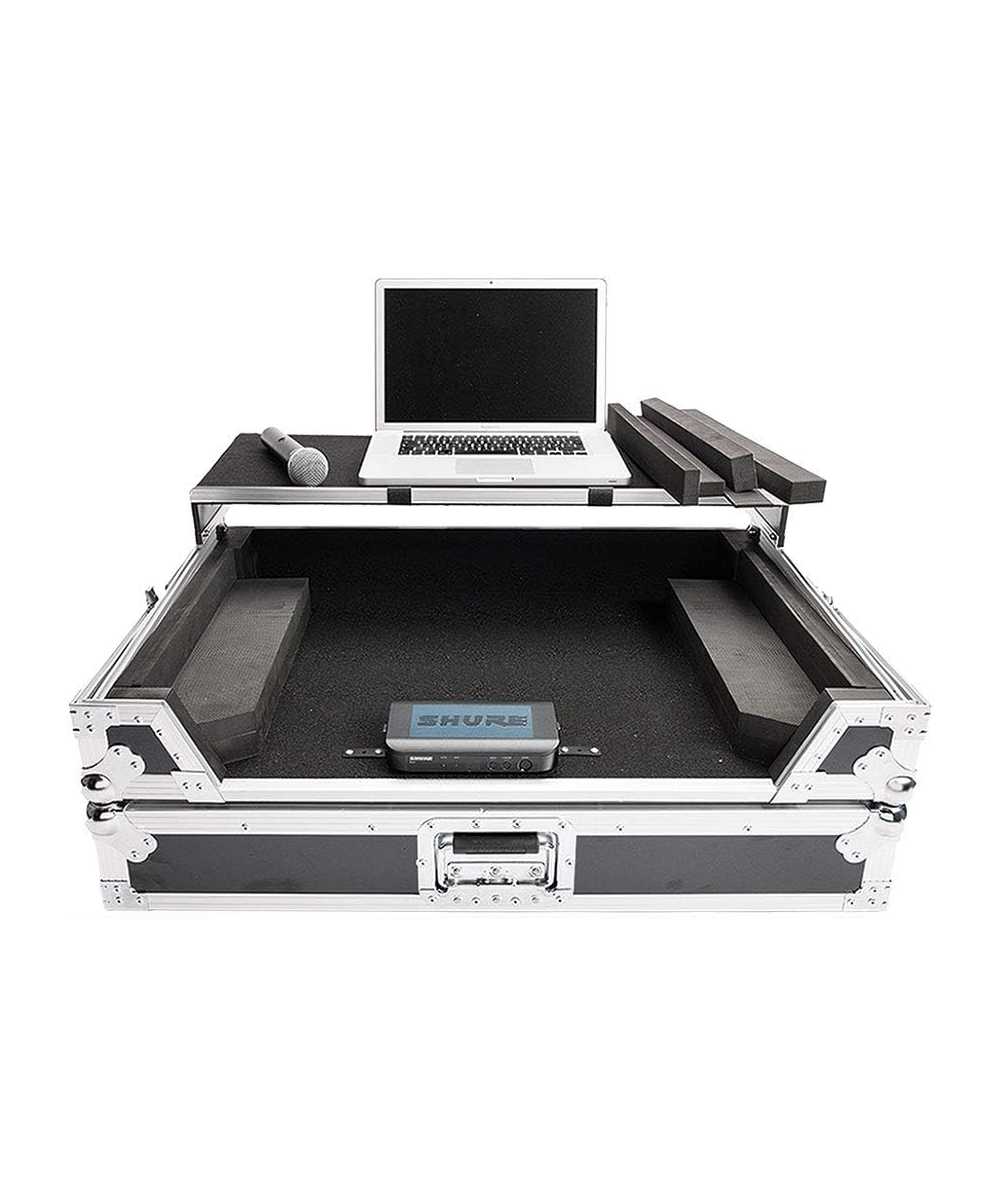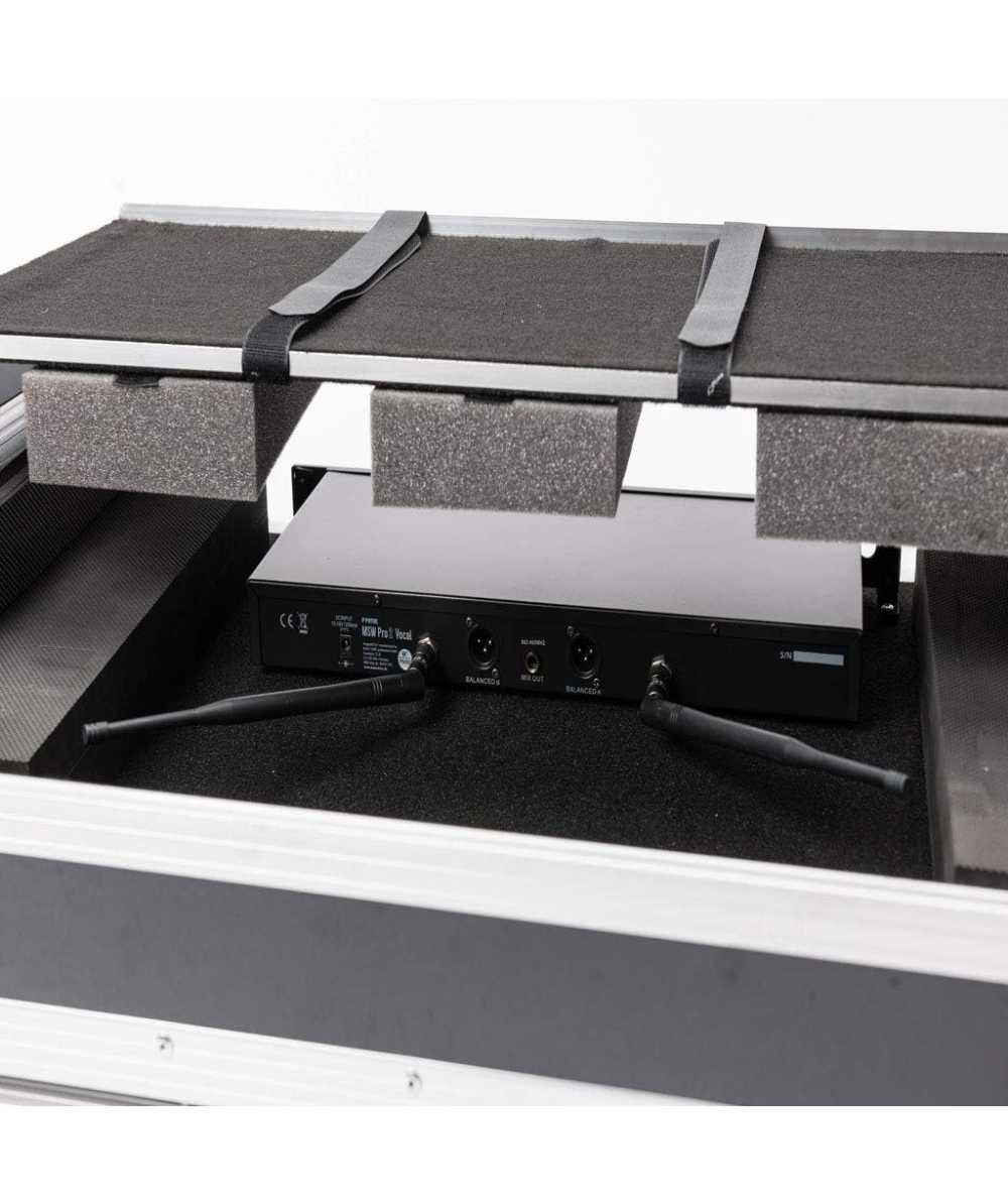 One size fits all! The new MULTI-FORMAT WORKSTATION XXL PLUS 19” is a heavy-duty road case for your DJ-controller and a 19’’ rack mount device (1U) such as a wireless microphone system, power strip or storage drawer. The versatile design features several foam pads in various sizes to accommodate most current extra-large DJ controllers such as Pioneer DDJ-1000 / SRT, Denon MCX-8000, Denon MC-7000, Roland DJ-808, Reloop Mixon4, Pioneer XDJ-RX2 or DDJ-SX3. The included 19” rack mounting brackets allow individually fastening of a 1U 19” unit (or smaller devices) at the front or rear underneath the controller. Thanks to the integrated gliding laptop platform and the convenient cable access port, the setup is ready for action in no time at all.