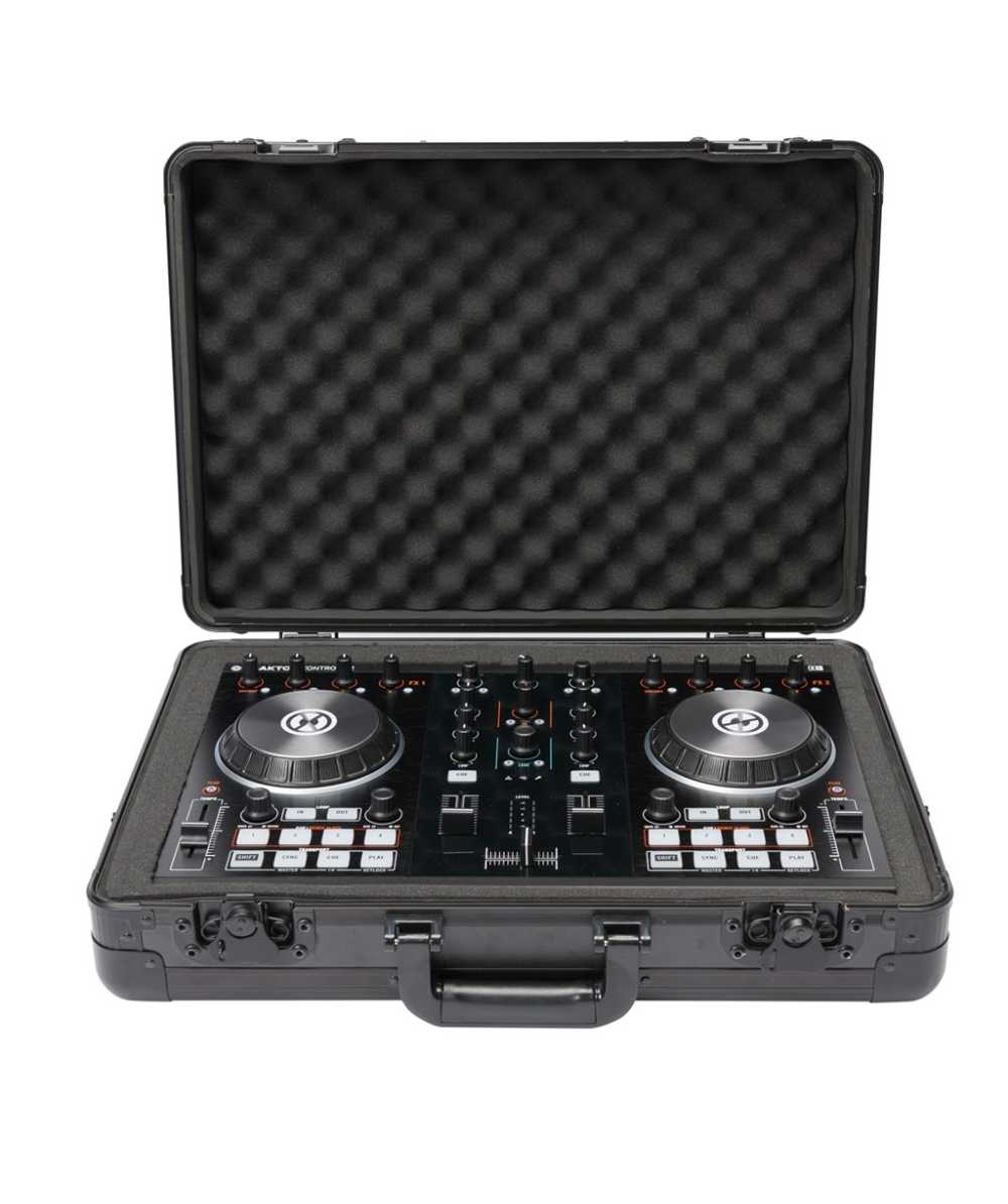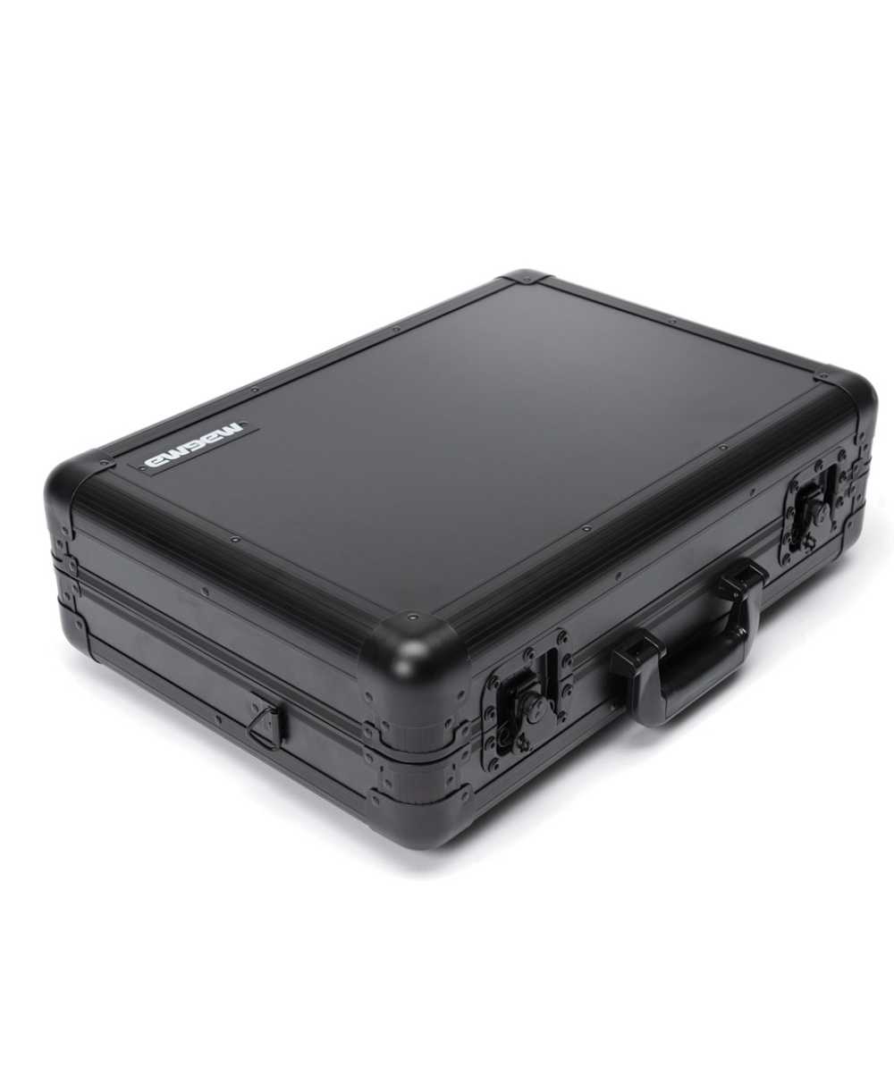 The new CARRY LITE DJ-CASE L is a very lightweight and compact carrying solution for your DJ-equipment and comes in a nice full-black matt finishing. Constructed from laminated MDF panels and anodized aluminum profiles, the CARRY LITE design features a fully padded interior with a variable pick & pluck foam that allows to create individual adapted compartments for various-sized DJ-controllers such as Pioneer DDJ-400, Pioneer DDJ-SB2, NI Kontrol S2, Denon MC-3000 or most Hercules DJ-controllers. The pick & pluck foam consists of two separate layers providing the additional option to create another slot underneath the controller for laptop or cable storage.
