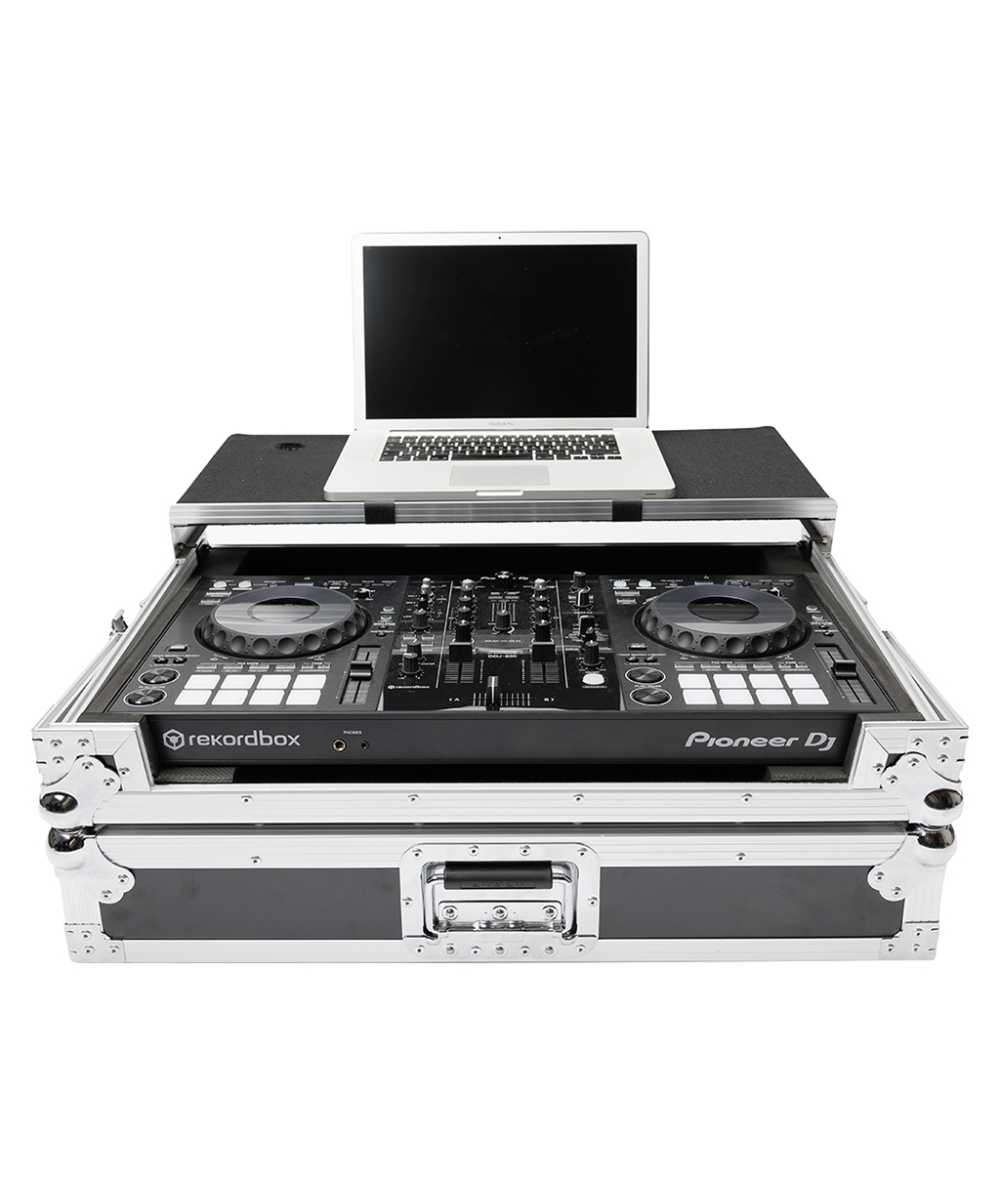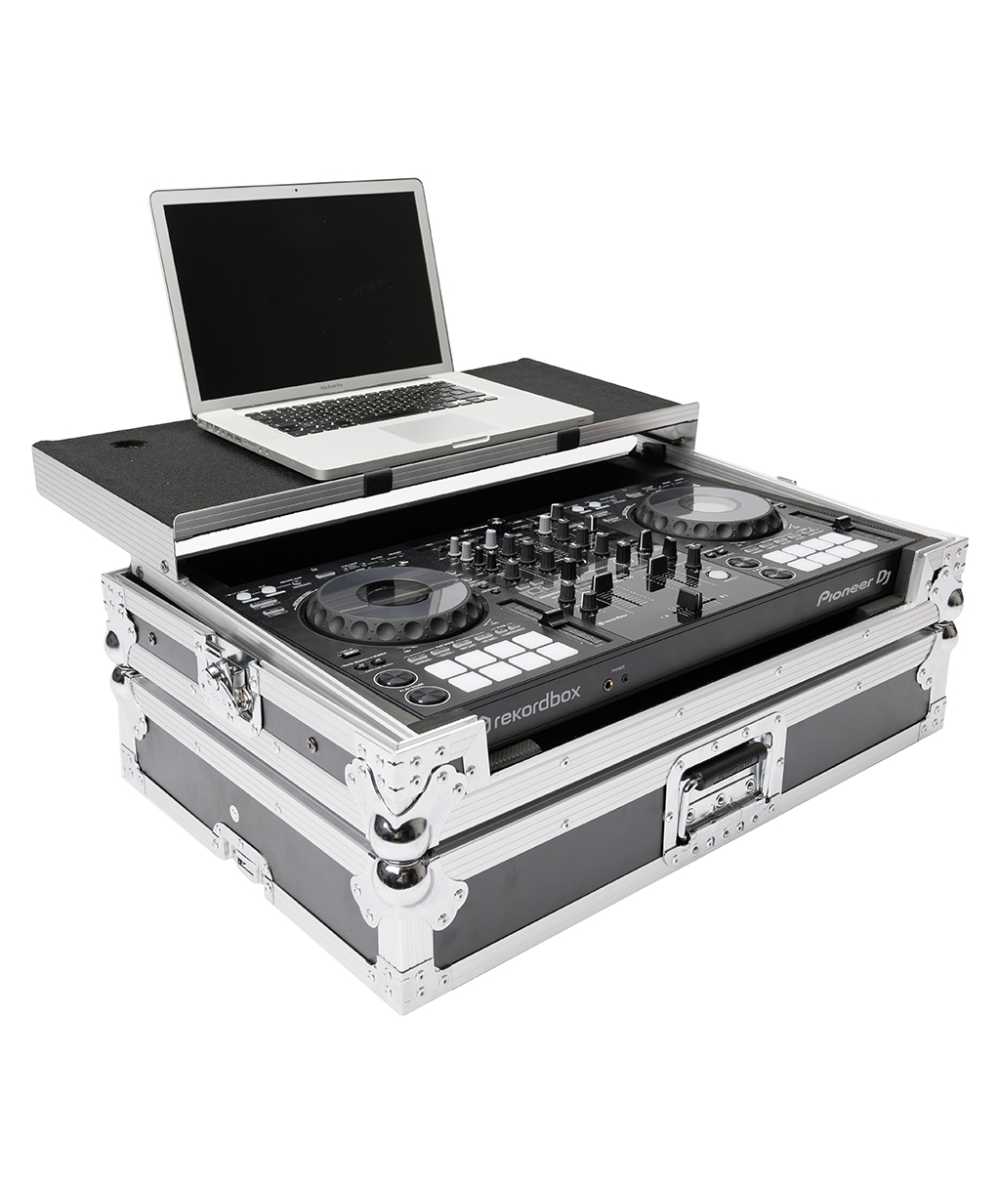 Customized to transport and protect the Pioneer DDJ-800 DJ-Controller. Crafted from 9 mm vinyl laminated plywood, sturdy aluminum profiles and heavy-duty butterfly latches, it provides you with secure transport and workstation in one. Thanks to the integrated gliding laptop platform and the convenient cable access port, the setup is ready for action in no time at all.