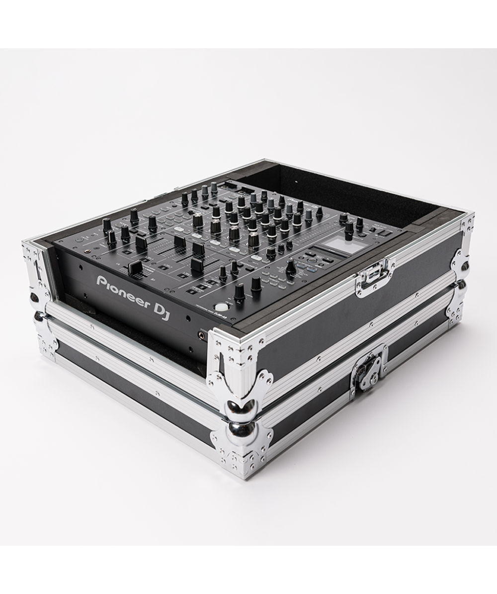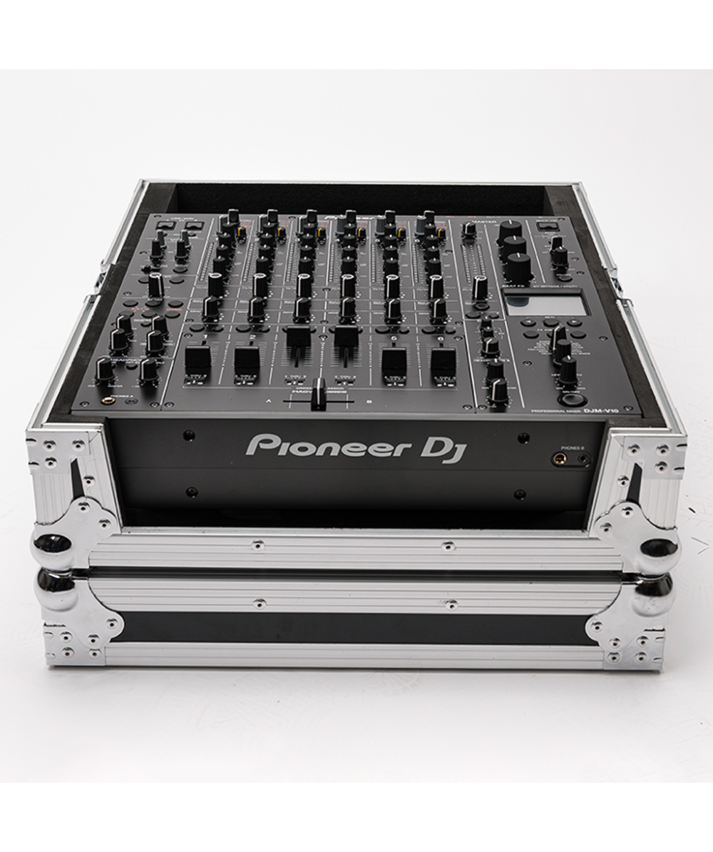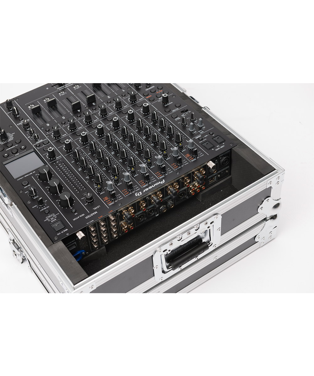 Custom designed to accommodate a Pioneer DJ DJM-A9 or DJM-V10 club-mixer. The included foam-set provide a snug fit for the slightly smaller DJM-A9 mixer. Crafted from 9 mm vinyl laminated plywood, sturdy aluminum profiles and heavy duty butterfly latches this case provides ultimate protection for mobile use on the road.