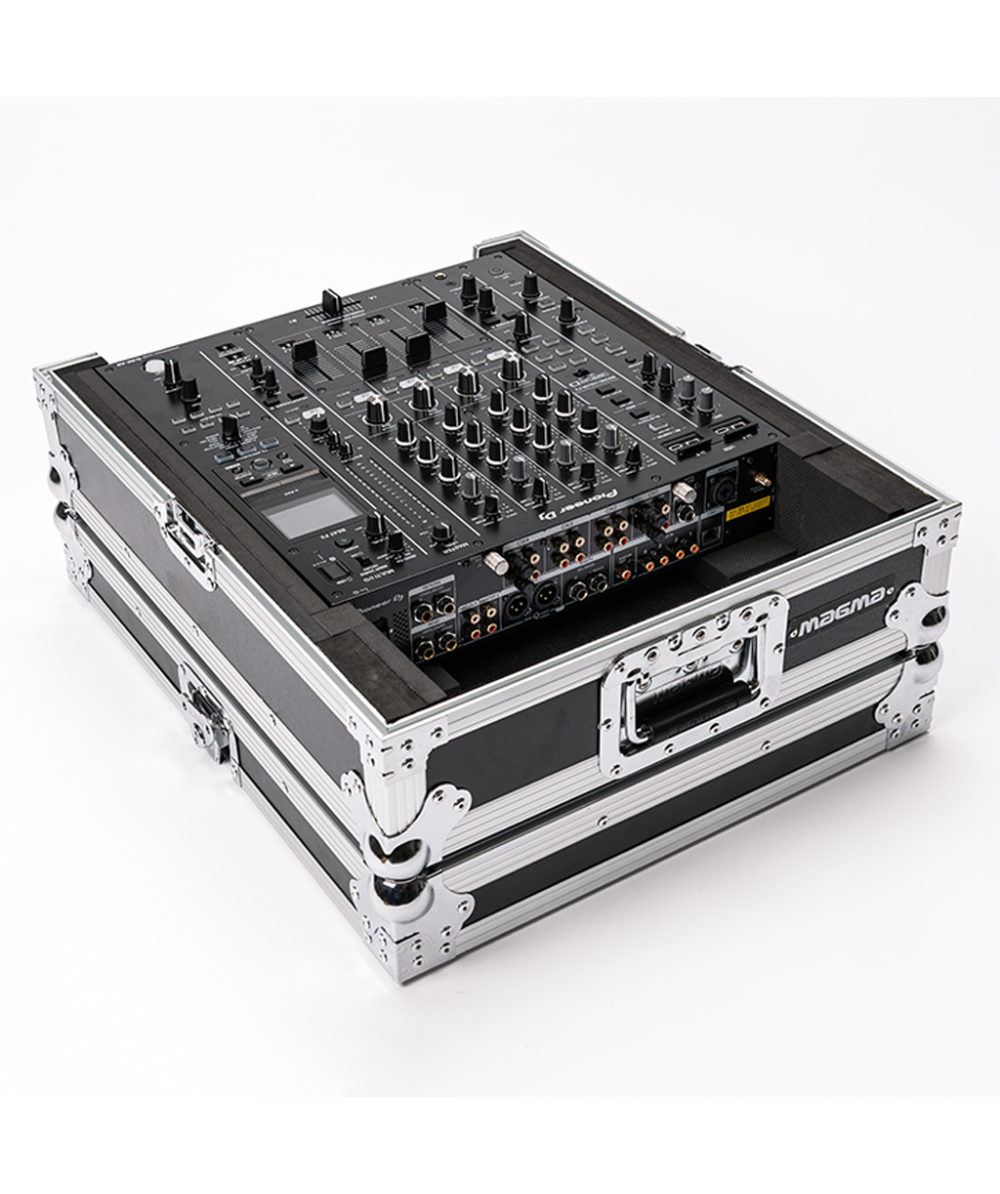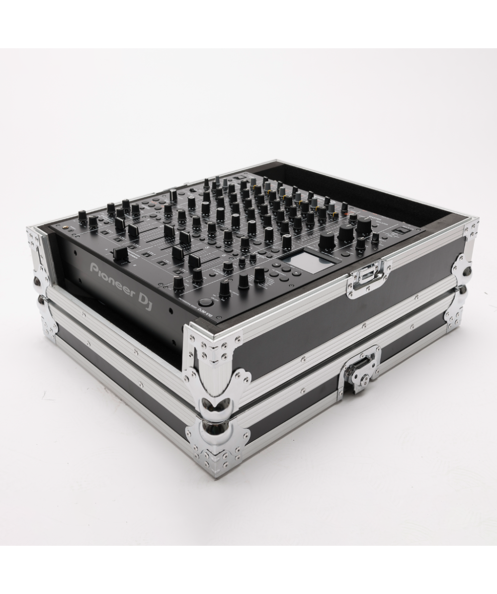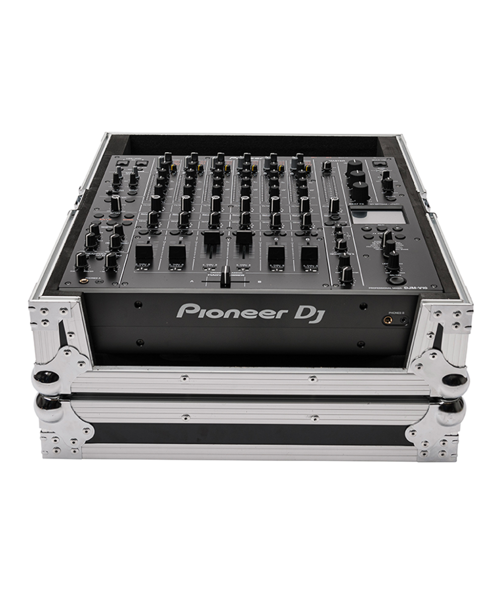 Custom designed to accommodate a Pioneer DJ DJM-A9 or DJM-V10 club-mixer. The included foam-set provide a snug fit for the slightly smaller DJM-A9 mixer. Crafted from 9 mm vinyl laminated plywood, sturdy aluminum profiles and heavy duty butterfly latches this case provides ultimate protection for mobile use on the road.