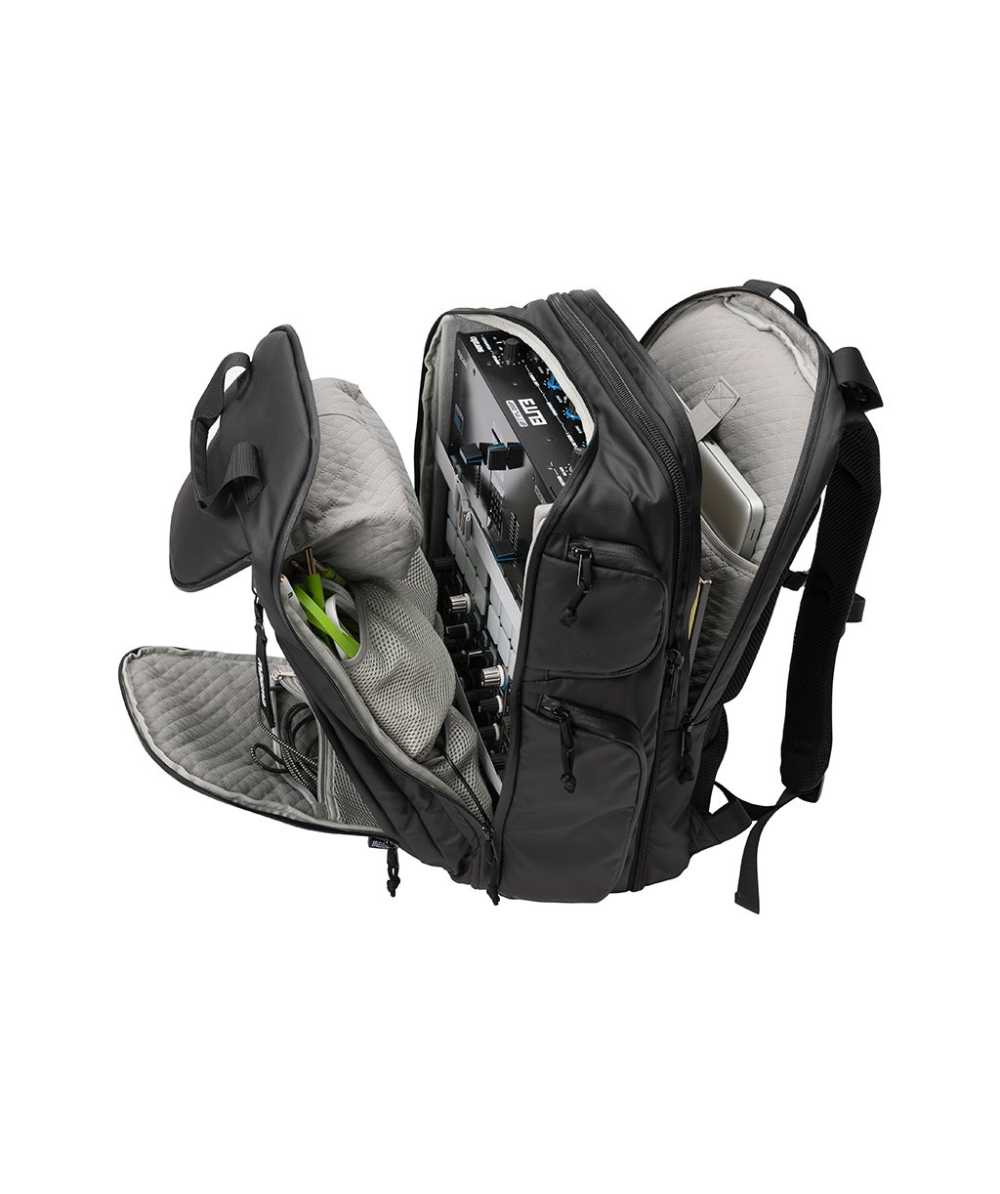 The customizable padded interior ensures your gear travels with you safely. Loads of additional compartments, pouches and zippered pockets offer intuitive accessory management and quick access to your belongings. The SOLID BLAZE PACK 120 is crafted from only the highest quality materials, such as its water-repellent RPET 900D shell and YKK AquaGuard zippers to protect your laptop, tablet, timecode records and other expensive gear from the elements