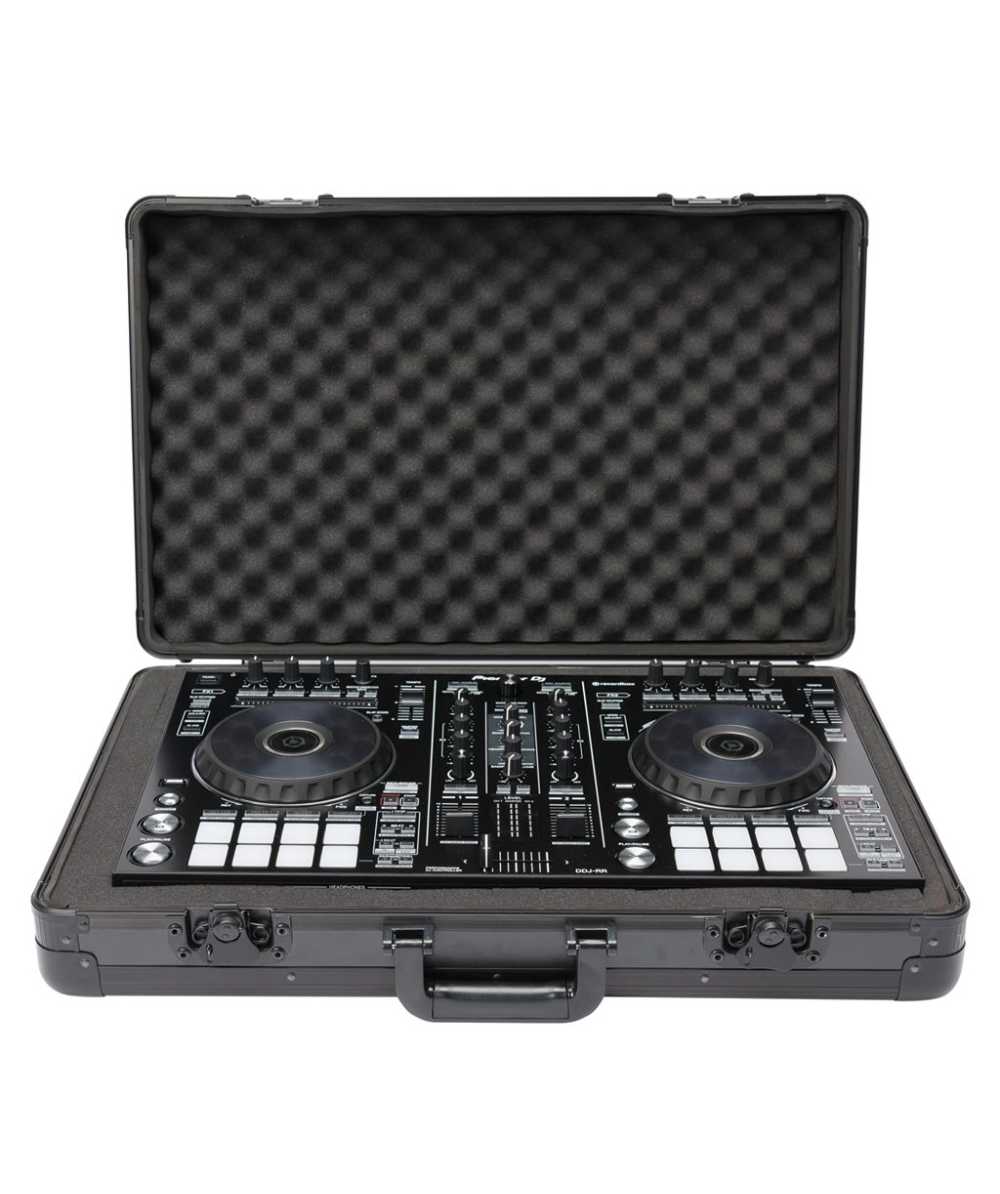 The new CARRY LITE DJ-CASE XL PLUS is a very lightweight and compact carrying solution for your DJ-equipment and comes in a nice full-black matt finishing. Constructed from laminated MDF panels and anodized aluminum profiles the CARRY LITE design features a fully padded interior with a variable pick & pluck foam that allows to create individual adapted compartments for various-sized DJ-controllers such as Pioneer DDJ-400 Pioneer DDJ-SR2, Numark NV2, NI Kontrol S4 or similar-sized DJ-controllers. The pick & pluck foam consists of two separate layers providing the additional option to create another slot underneath the controller for laptop or cable storage