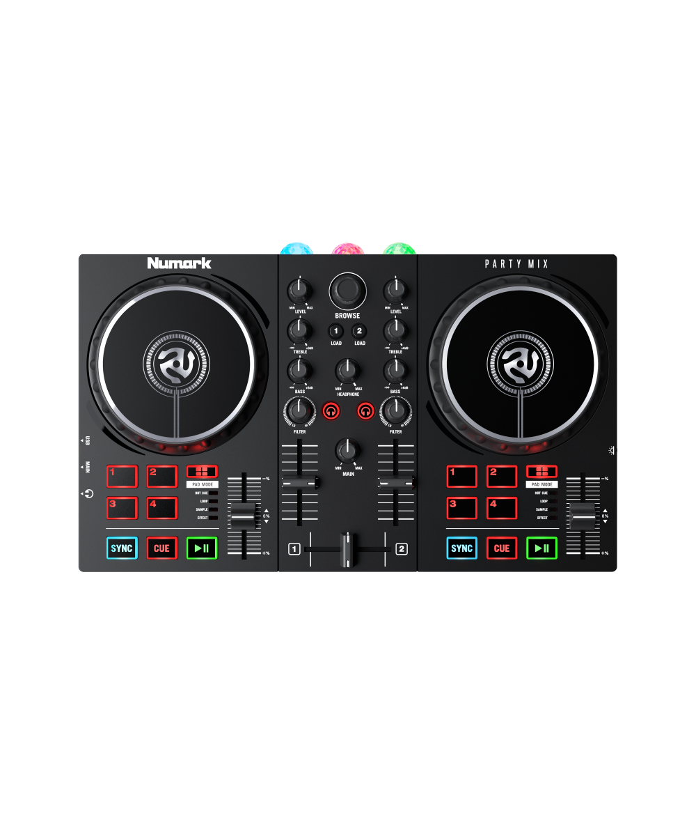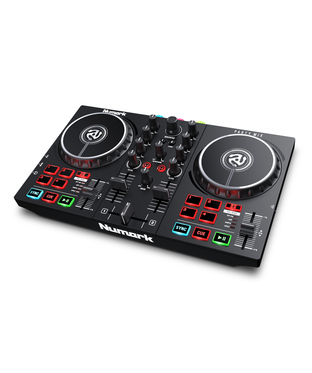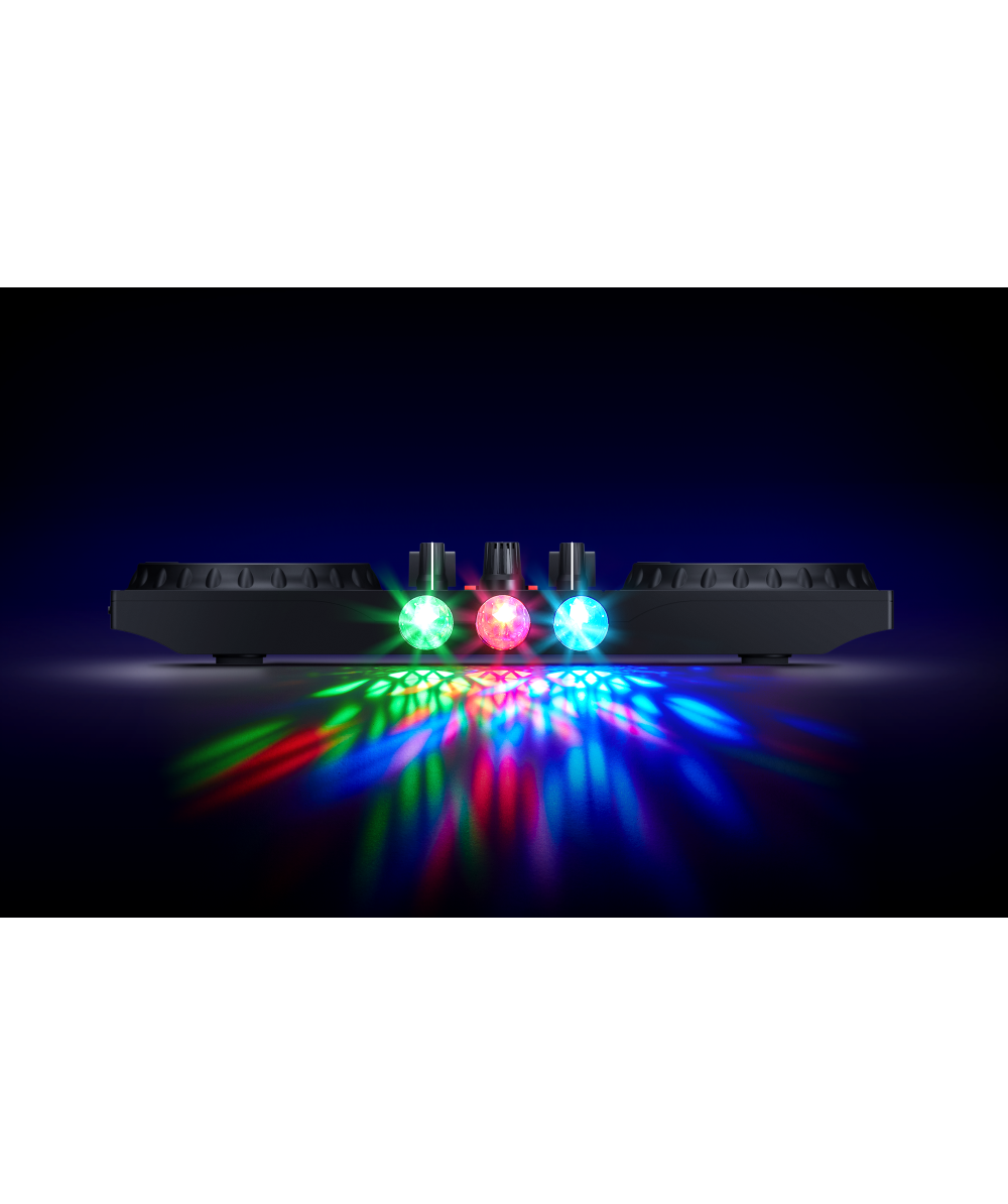 Four performance pads on each deck allow quick access to cue points, loops, effects or samples. Alongside Play and Cue buttons on each deck, Sync buttons automatically tempo match two tracks for perfectly aligned mixes. Party Mix II’s dedicated Filter knobs are perfect for adding some flair to your mix, and a software-adjustable crossfader caters for any mixing style – whether it’s sharp cuts for scratches or long, smooth fades for mixes, Party Mix II delivers!