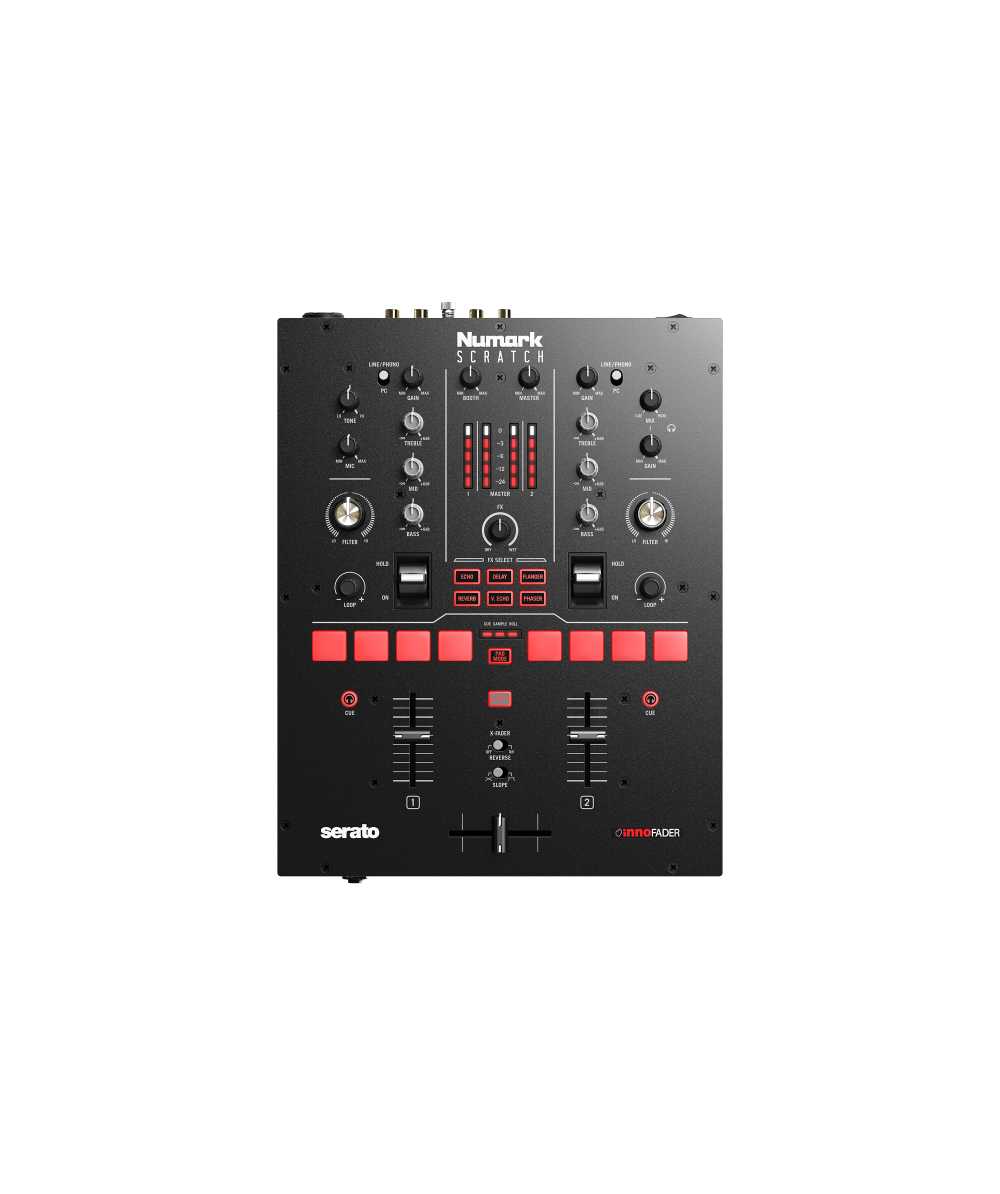 Ready to conquer even the most rigorous of routines, Numark’s all-new Scratch is a 24-bit two-channel mixer that fuses pro features and an in-demand software suite at a price point that defies belief. Combining an all-metal “built-like-a-tank” chassis with professional features such as a built-in InnoFADER crossfader, performance pads, instant loop encoder and toggle paddles to trigger software-based effects, Scratch is set to dominate the scratch mixer category, establishing a new standard for mixers at this affordable price point - there is simply nothing that combines the features, versatility, ease-of-use, quality and performance of this unit—anywhere