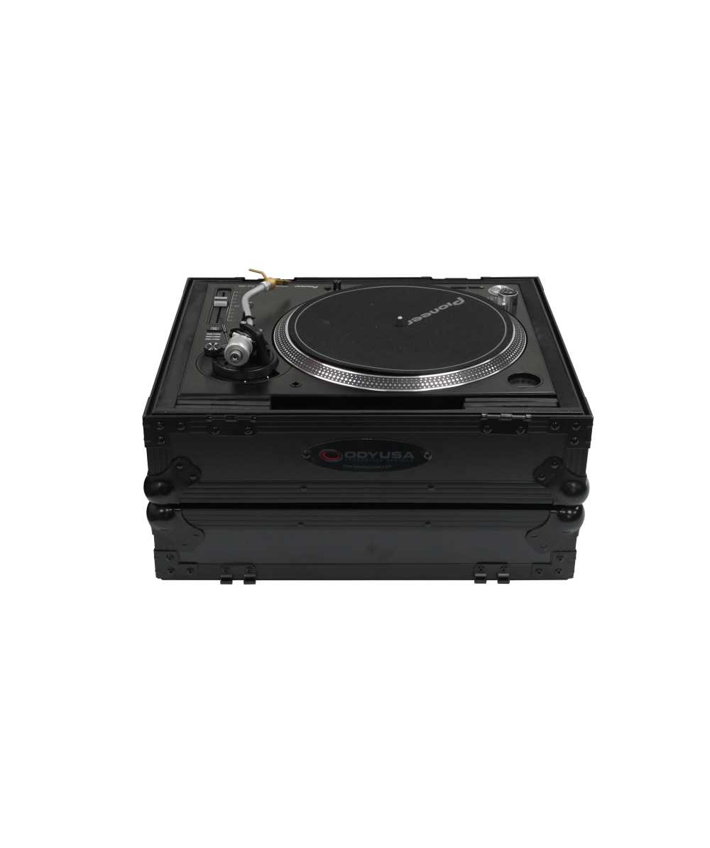 Odyssey's Black Label™ Series of ATA flight cases, made to the exact same standards as our standard color Flight Zone® series but with a twist. The components used to produce this series, including the aluminum trim and hardware, is anodized and/or powder coated in "black" for a one of a kind look that is so slick looking it's beyond cool. The FZ1200BL is great for Technics 1200 style turntables but is large enough to hold Numark and other similar size turntables such as those by Pioneer and Stanton. If you plan to setup 2 of these cases with a mixer in classic battle position, take a look at our Battle Trays, the |FZBB10| for a standard 10" format DJ mixer and the |FZBB12| for a standard 12" format DJ mixer.