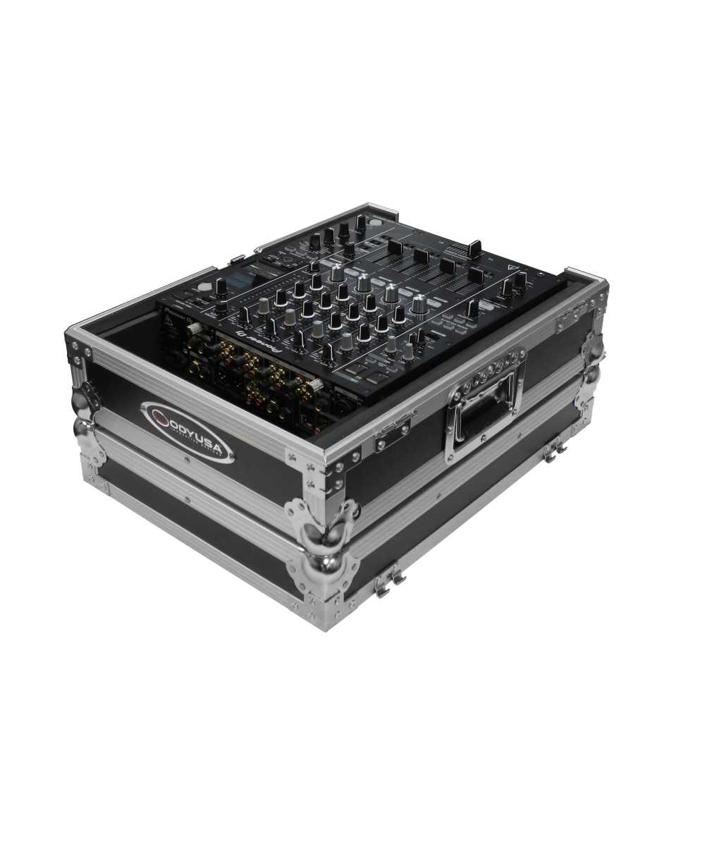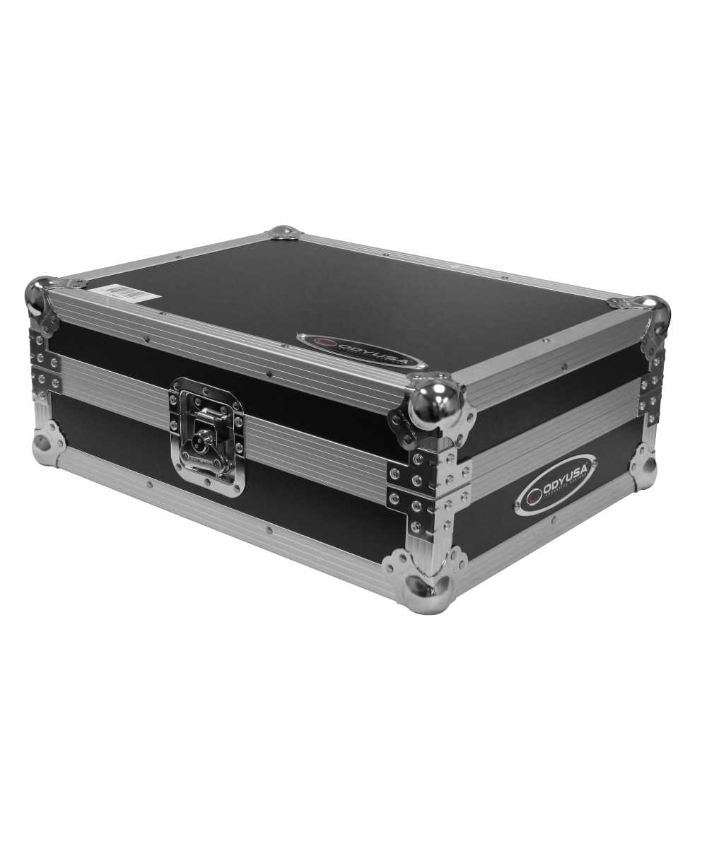 Transport your 12" format DJ mixer in style with Odysseys foam-lined Flight Zone mixer case. It features and extra wide front removable access panel that provides full protection during transit, yet can conveniently be slid out to access front controls and input jacks during use for all of today's hottest DJ mixers. The "extra deep" design gives you additional rear space behind the mixer, convenient for quick easy cabling or storing compact accessories. The removable break-away hinged lid doubles as an elevated base for those lower tables or taller DJs. Also available in the Black Label