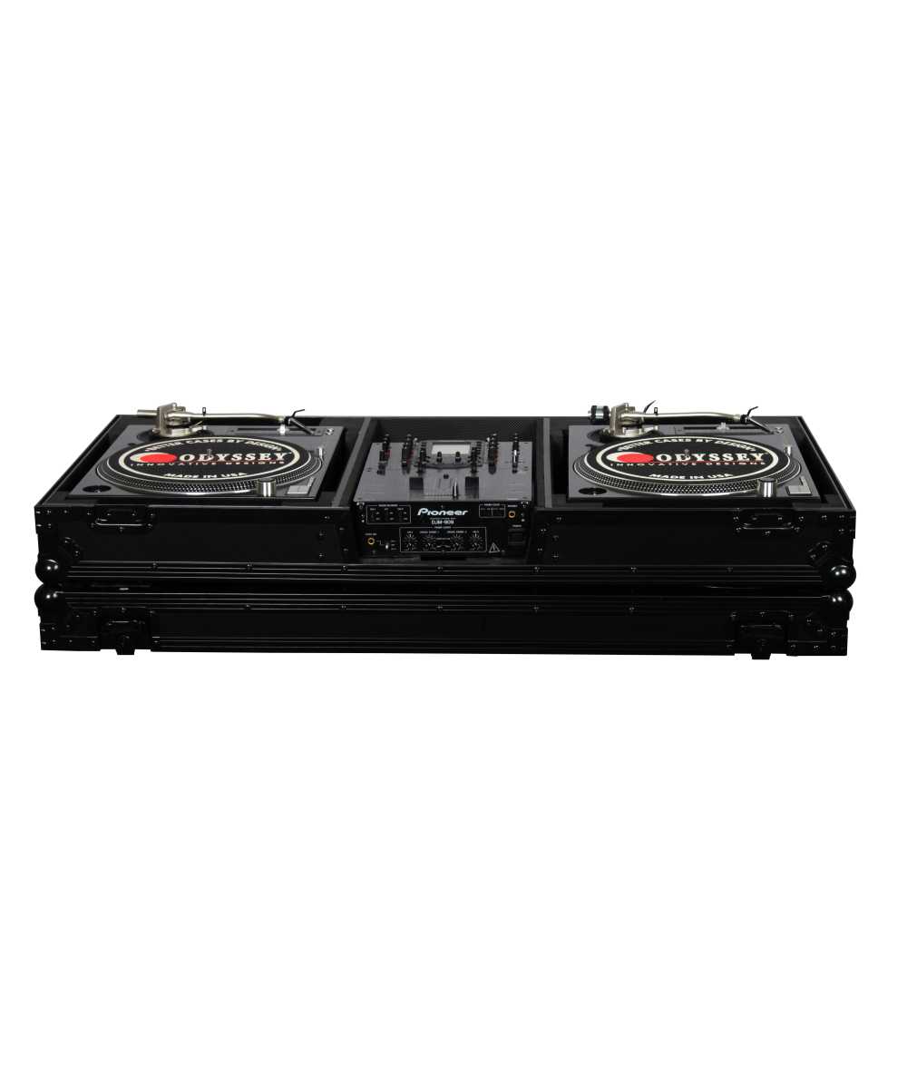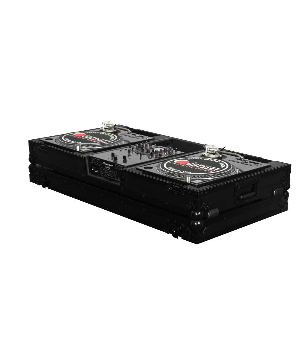 Odyssey's Black Label Series of ATA flight cases, made to the exact same standards as Odyssey's standard color Flight Zone series but with a twist. The components used to produce this series, including the aluminum trim and hardware, is anodized and/or powder coated in "black" for a one of a kind look that is so slick looking it's beyond cool. Each compartment of the FZBM10WBL features a valley, or pit, that allows for more ventilation of the gear as well as an area for cables management. Other features include rugged built-in roller wheels, recessed latches and spring-loaded handles, heavy-duty ball corners, and a front mixer section V-cut access panel. Cabling is clean and easy with convenient access ports throughout the rear of the case. Odyssey's turntable DJ coffins can accommodate Technics as well as Numark, Pioneer, Stanton, and similar sized turntables.