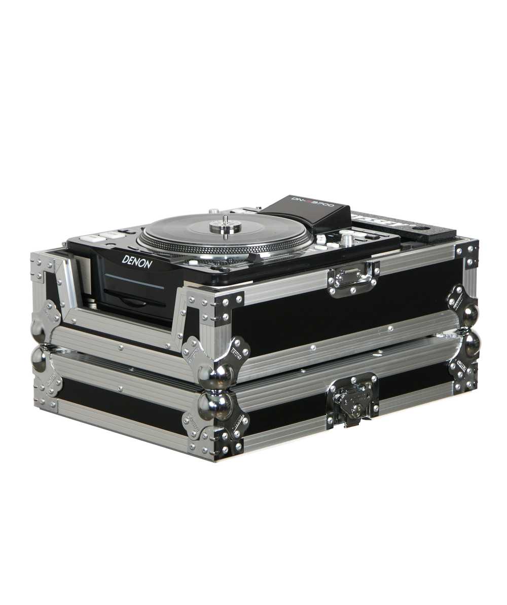 FZCDJ: Odyssey's ATA Large Format CD Player case features a slide-out panel for entry to the front-loading CD slot, and hardware includes recessed latches and handles and stackable ball corners.